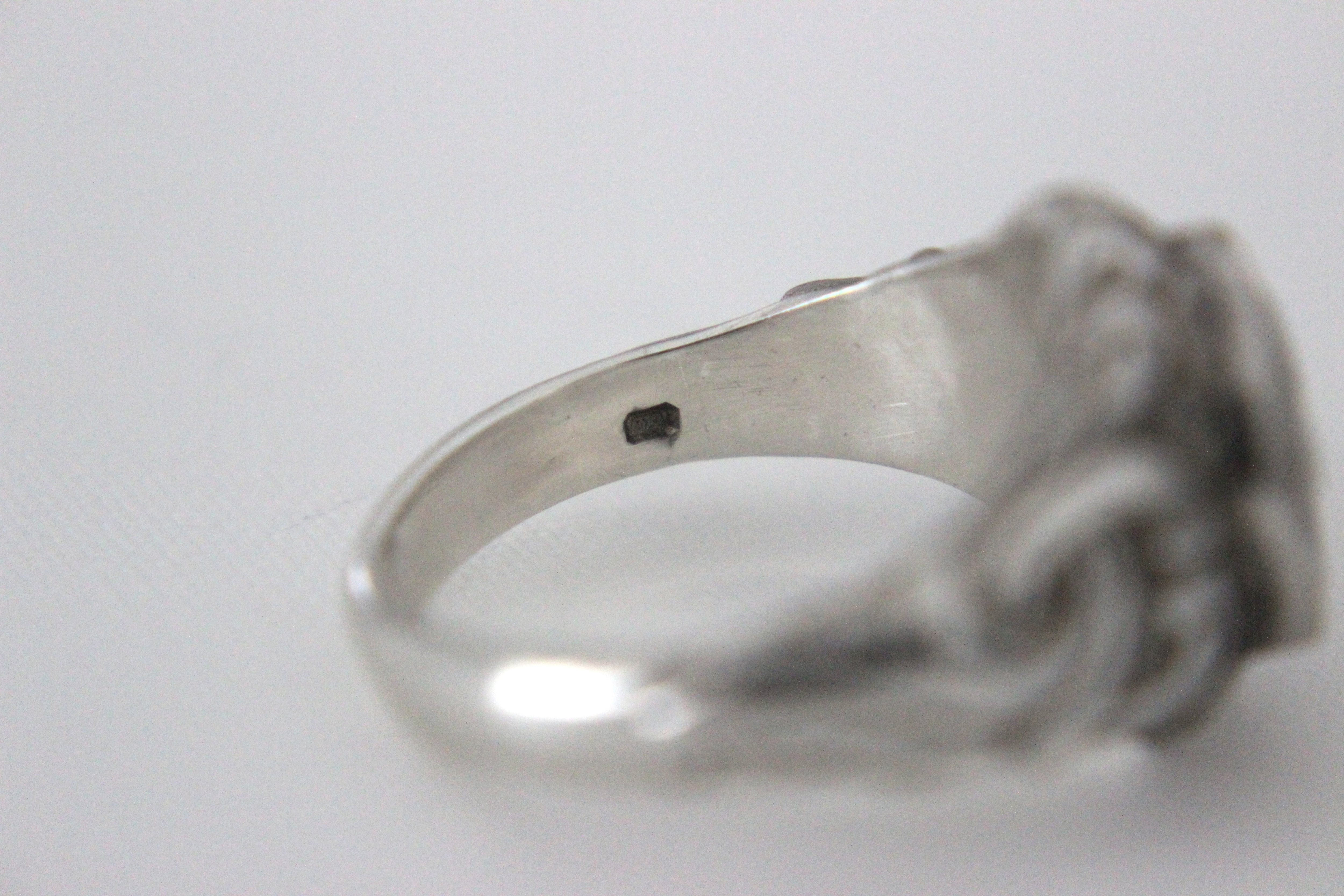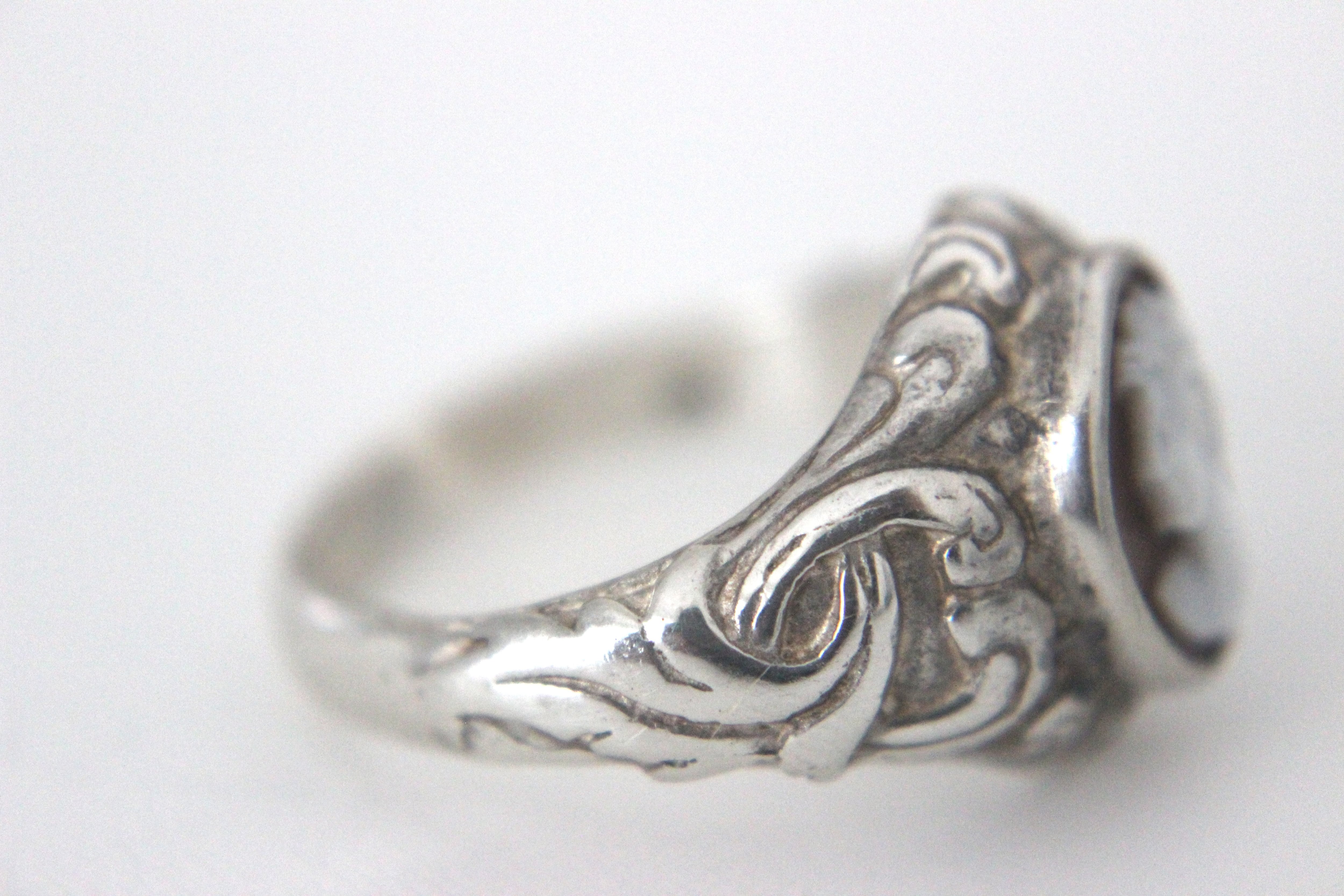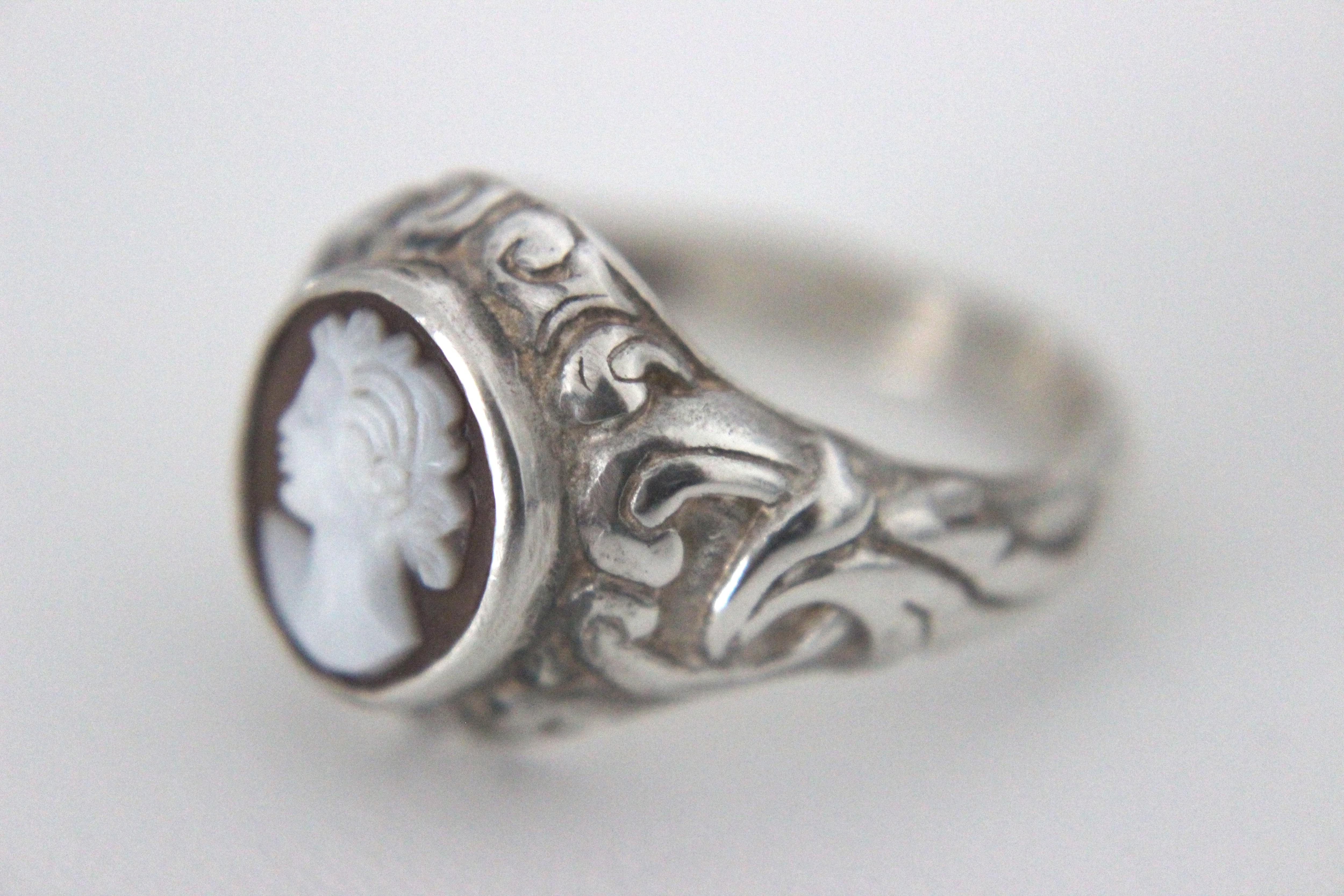 定番の女性の横顔のシェルカメオをセットしたシルバーリングです。