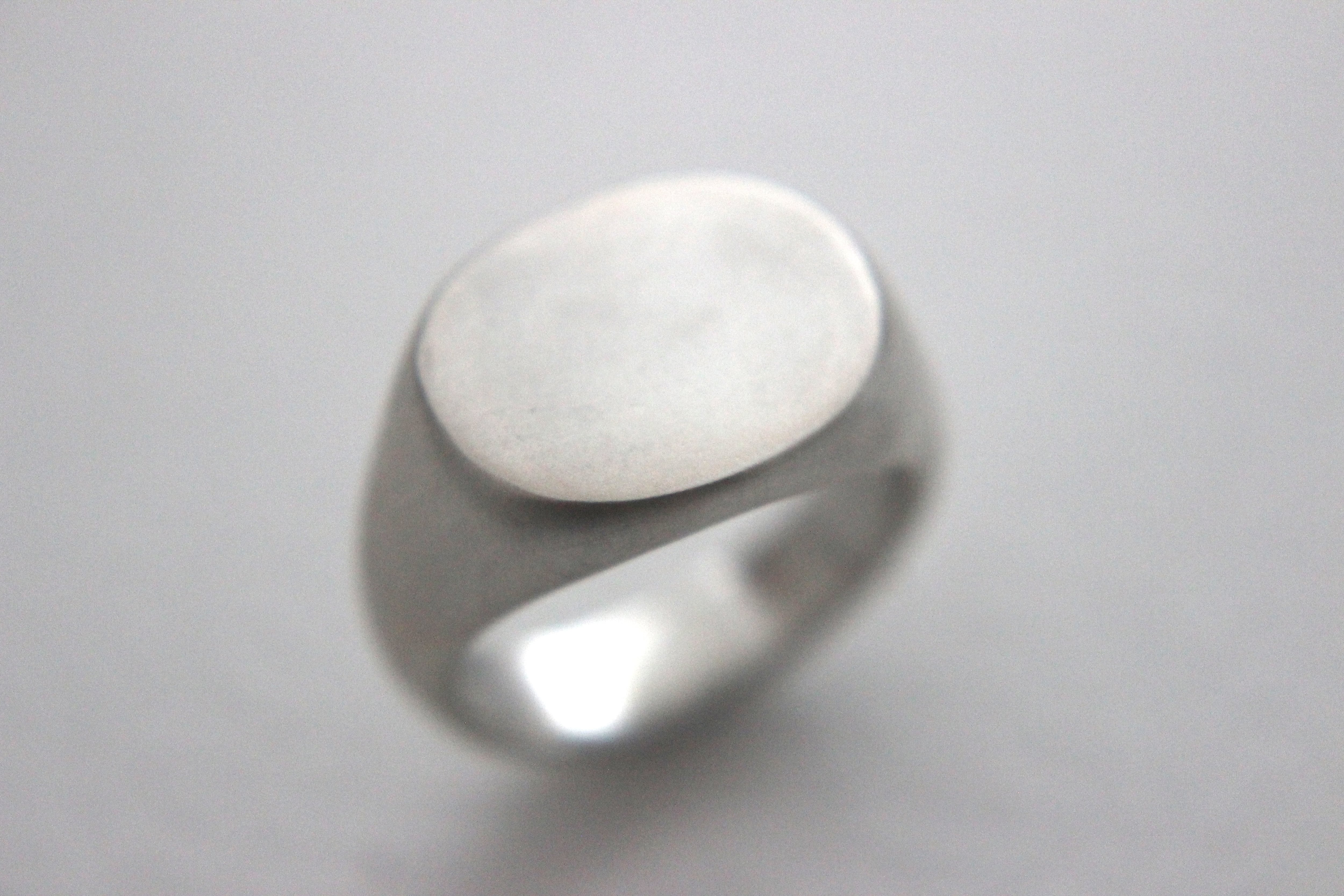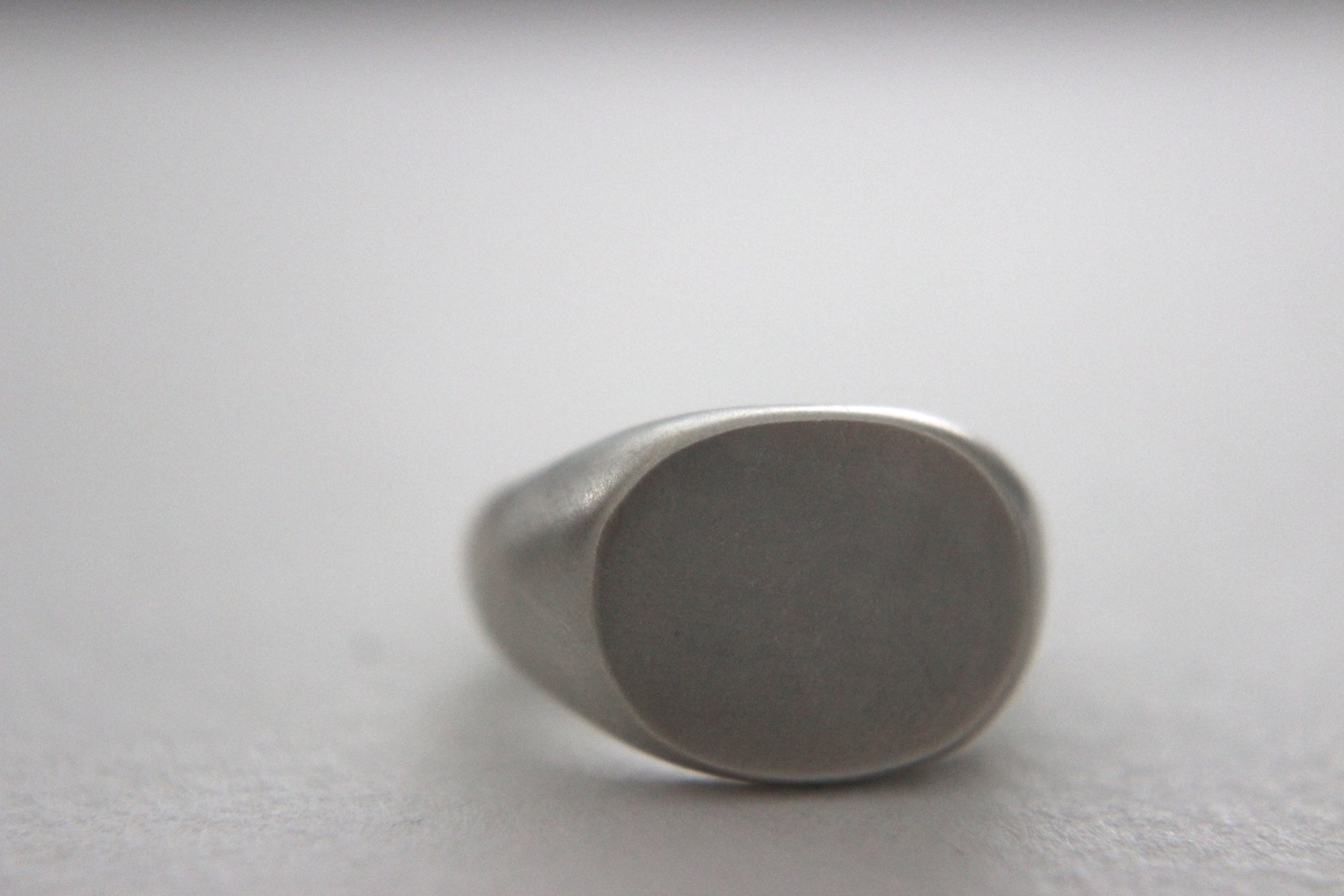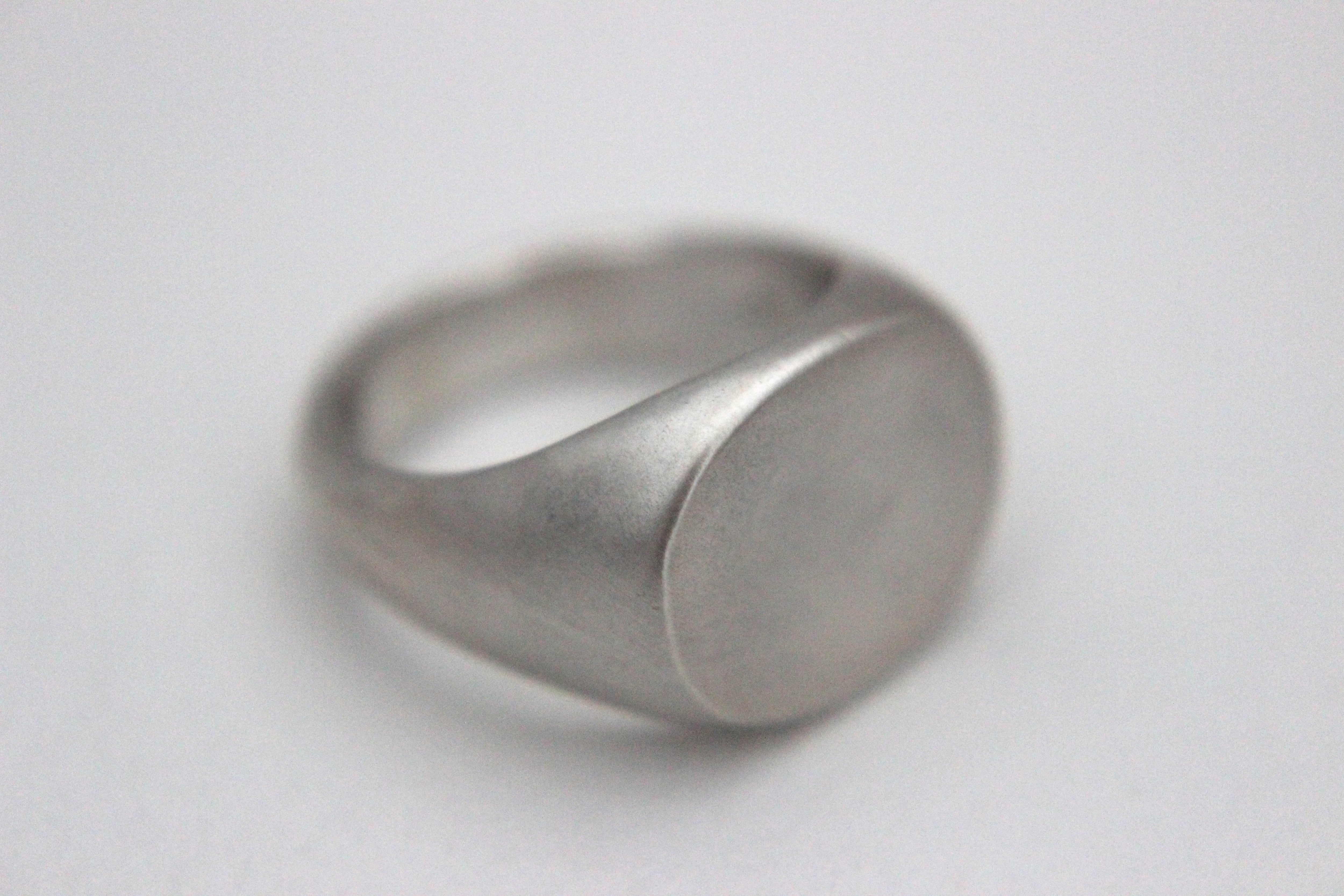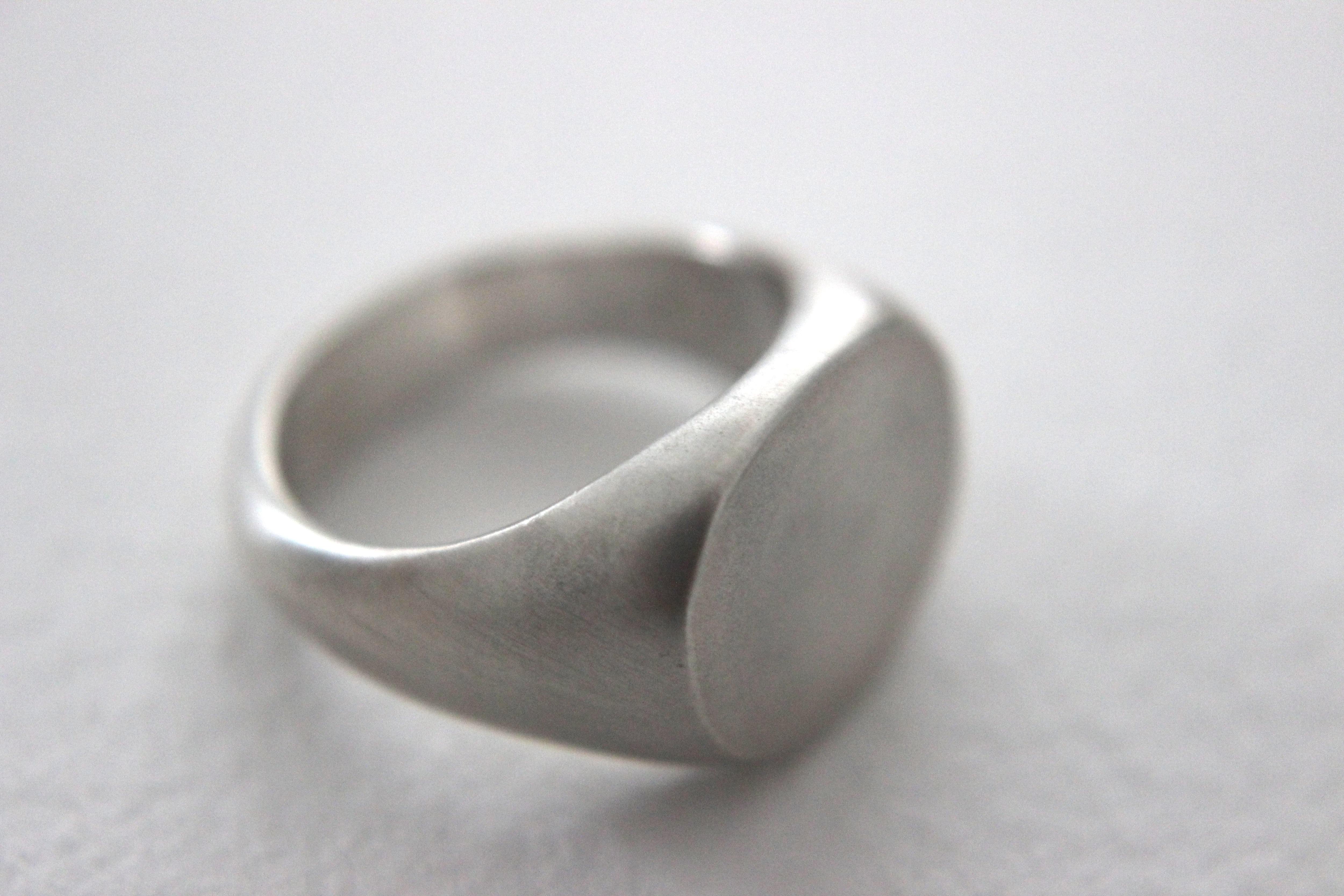 楕円形のフラットなトップを持つシグネットリングに、マット加工(艶消し)を施しました。