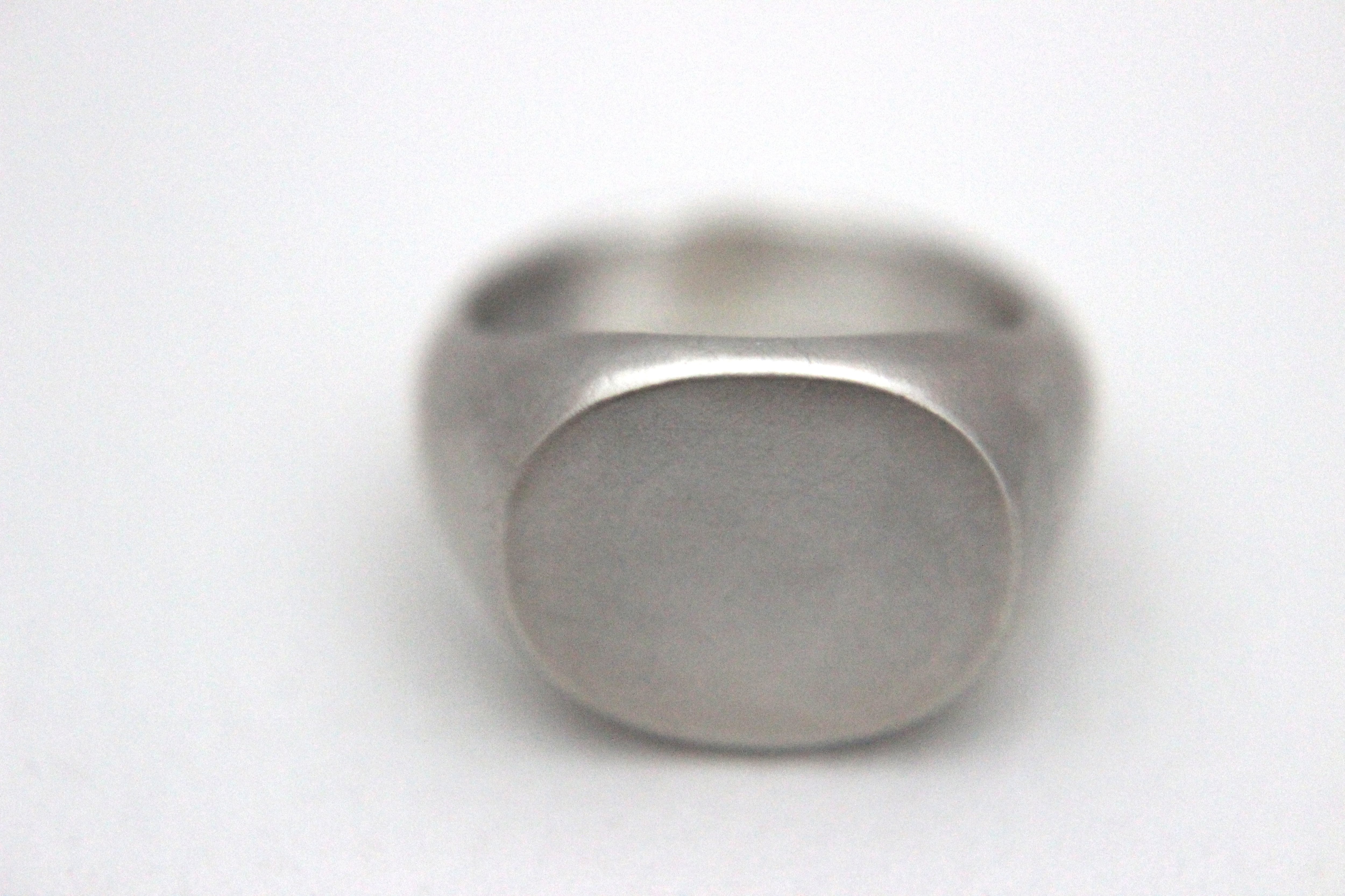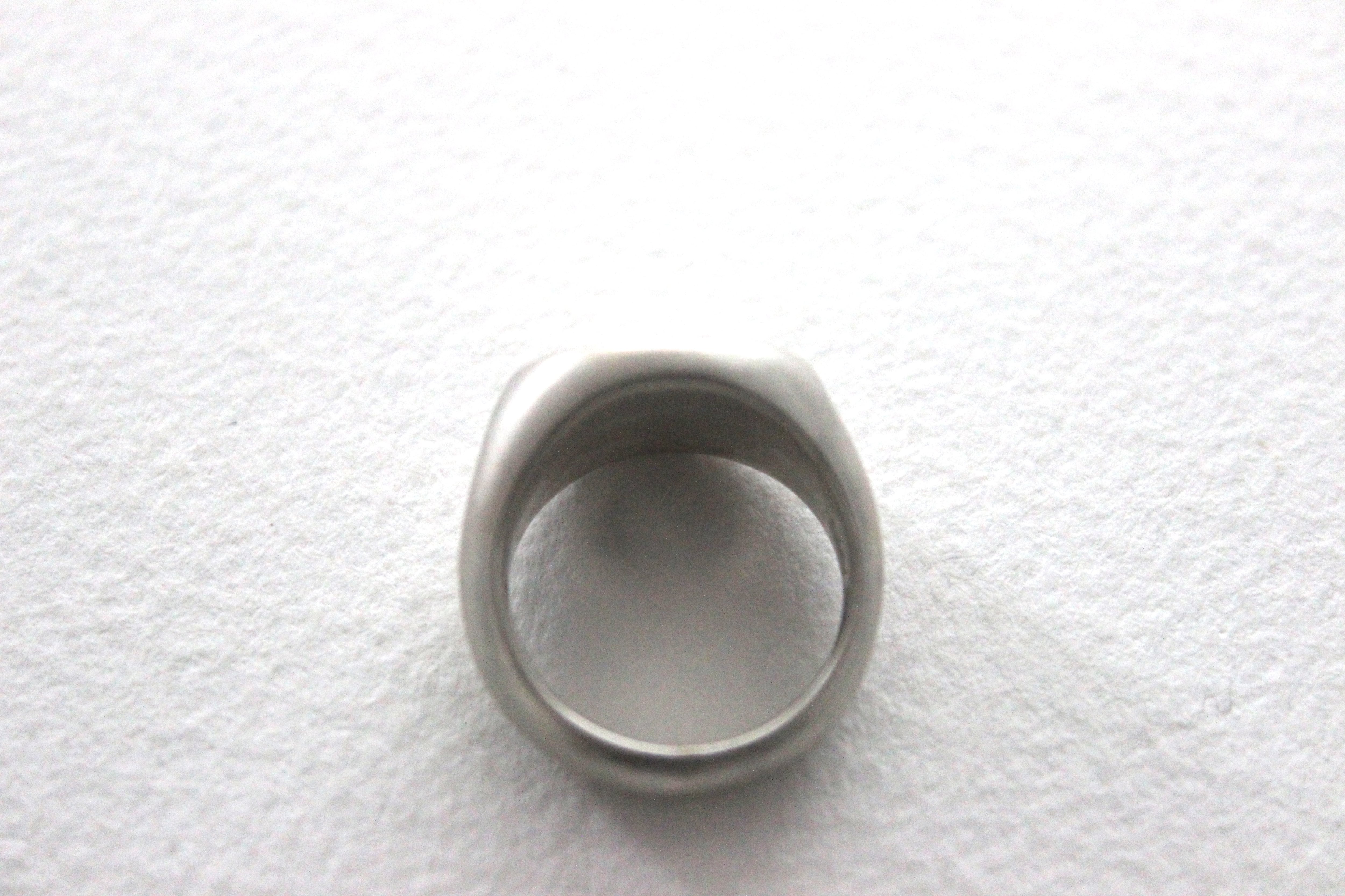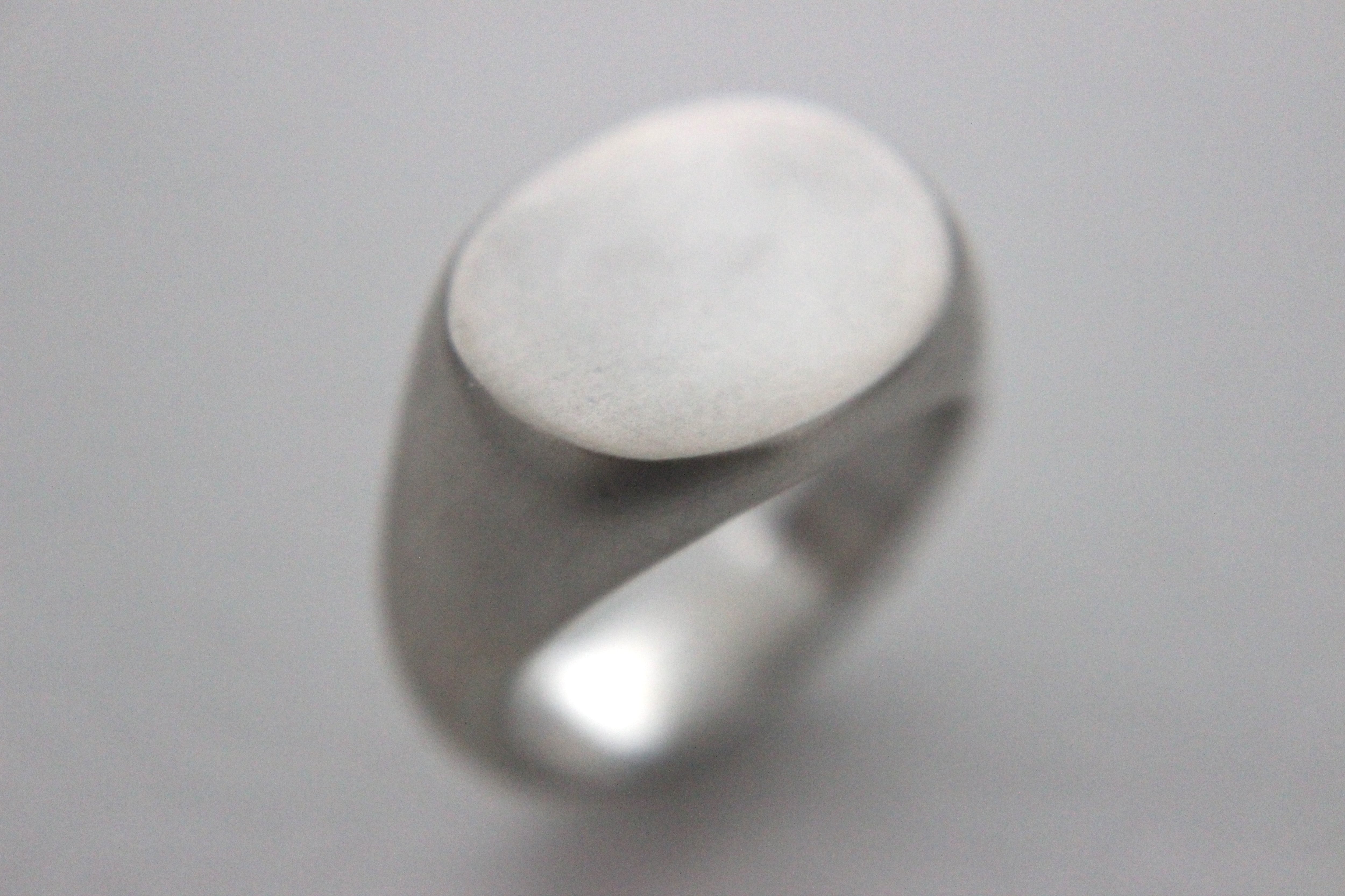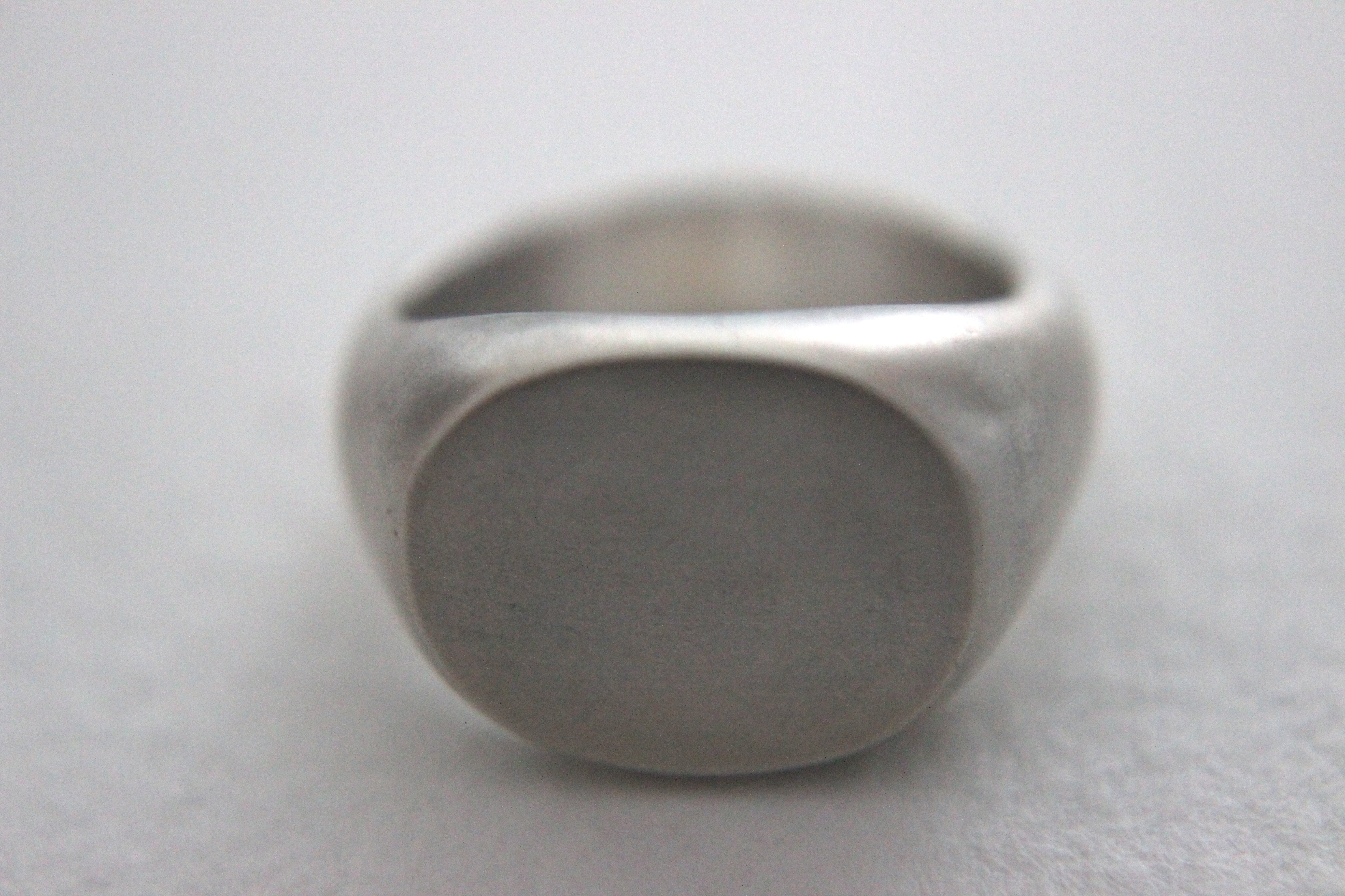 楕円形のフラットなトップを持つシグネットリングに、マット加工(艶消し)を施しました。