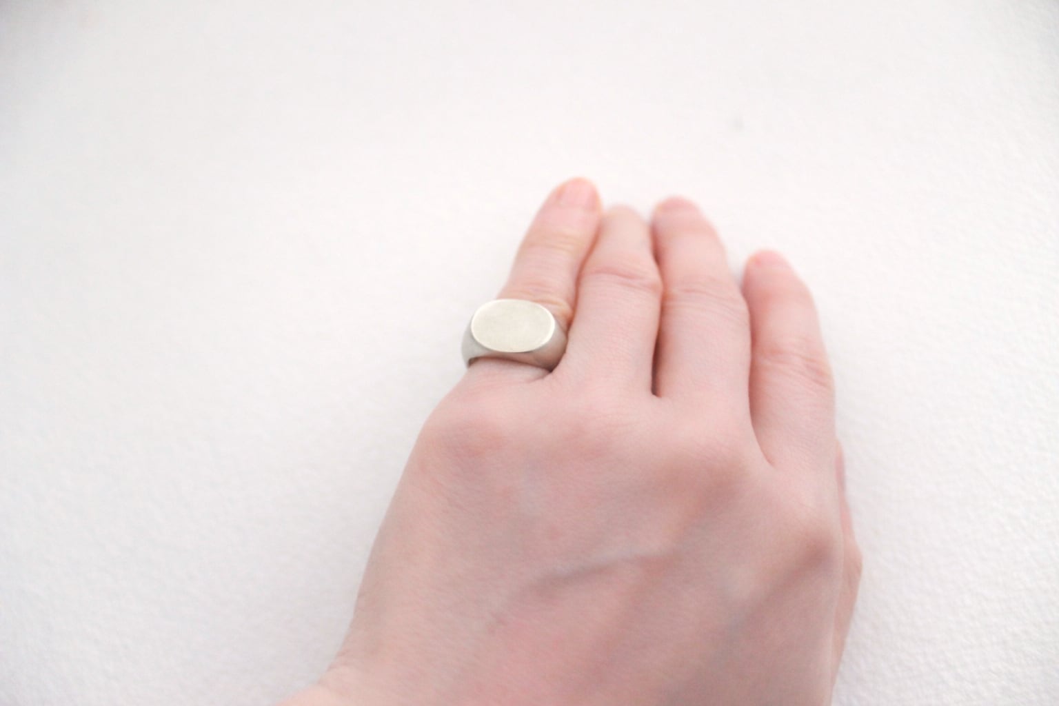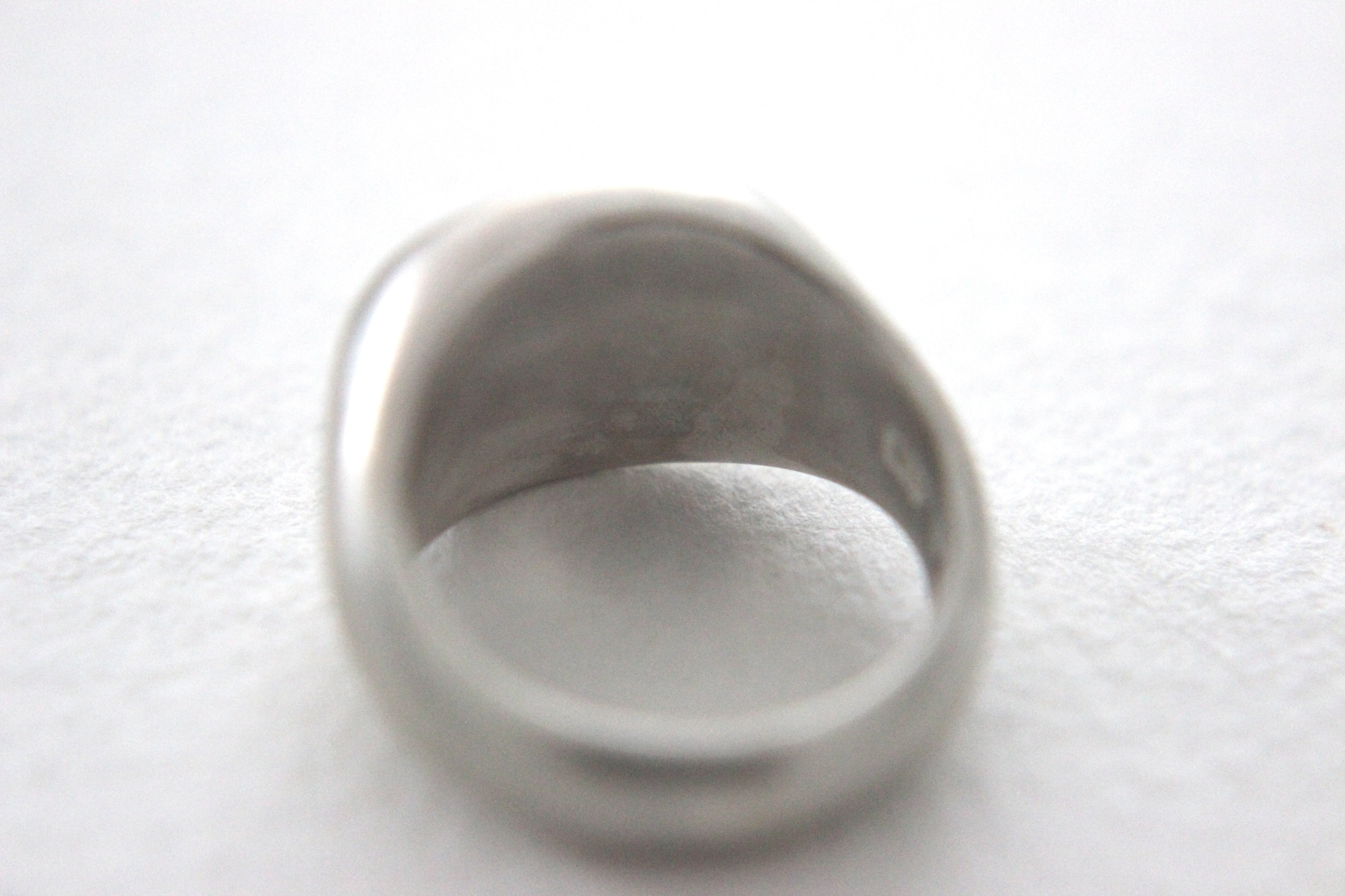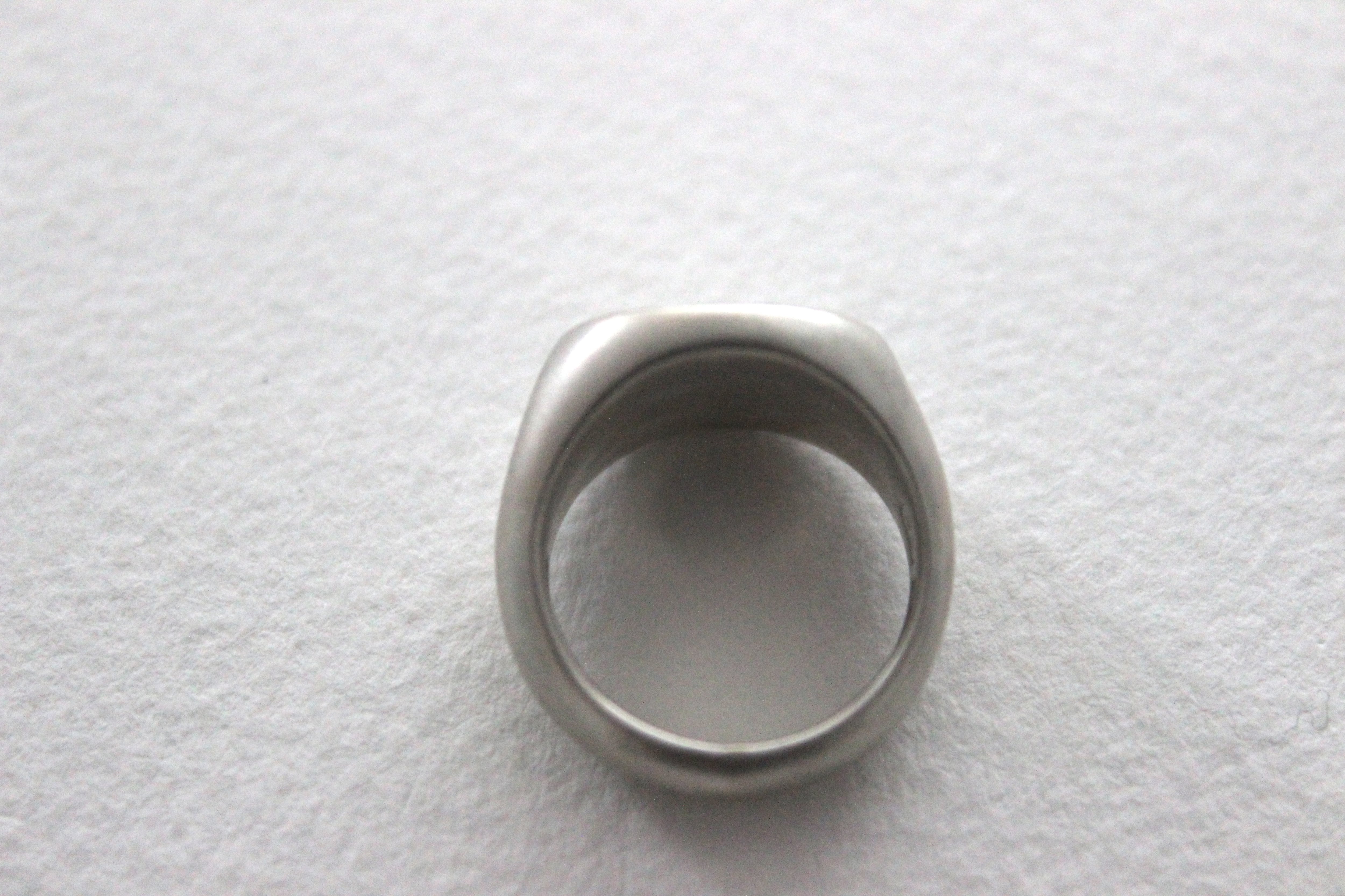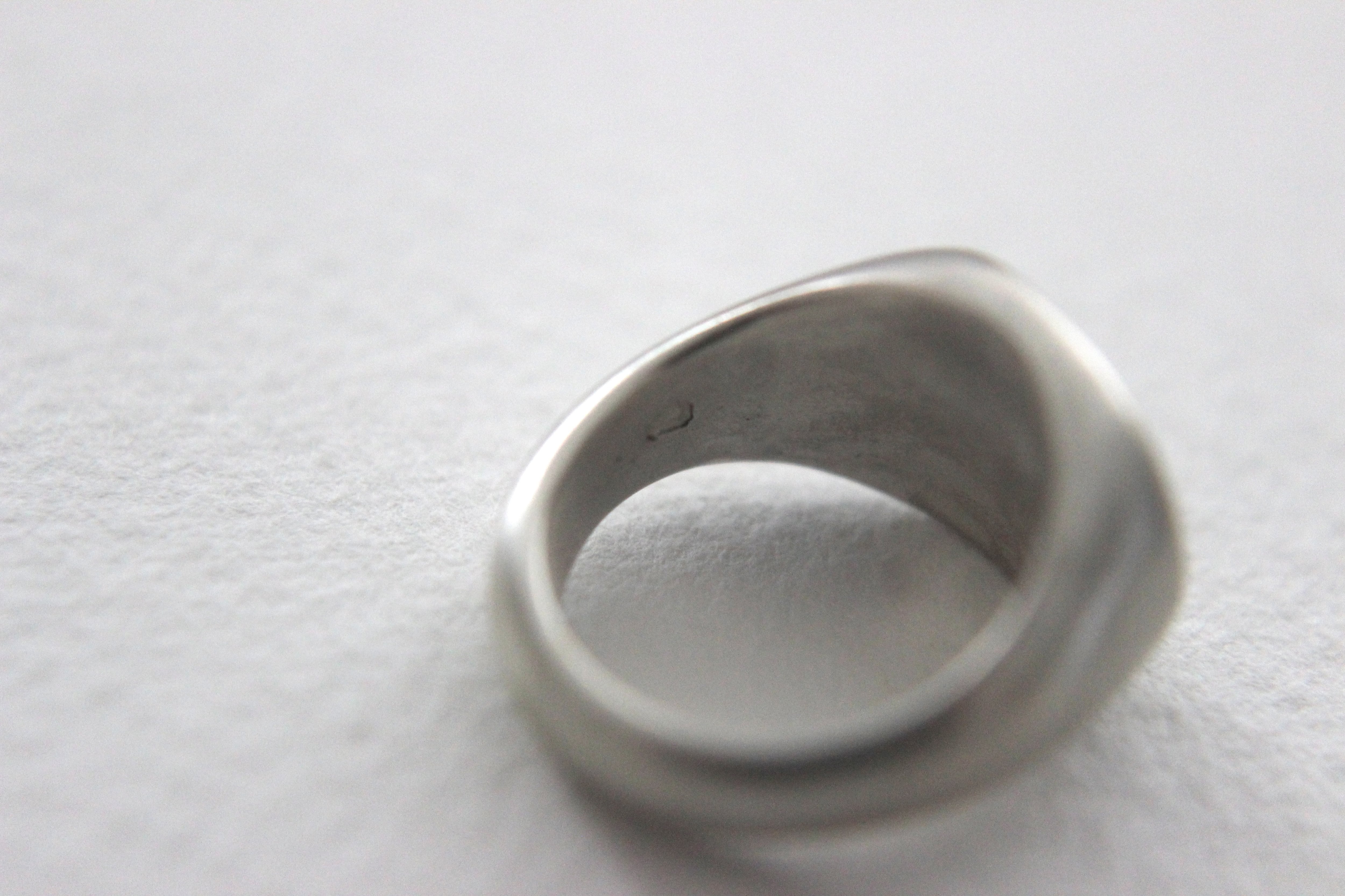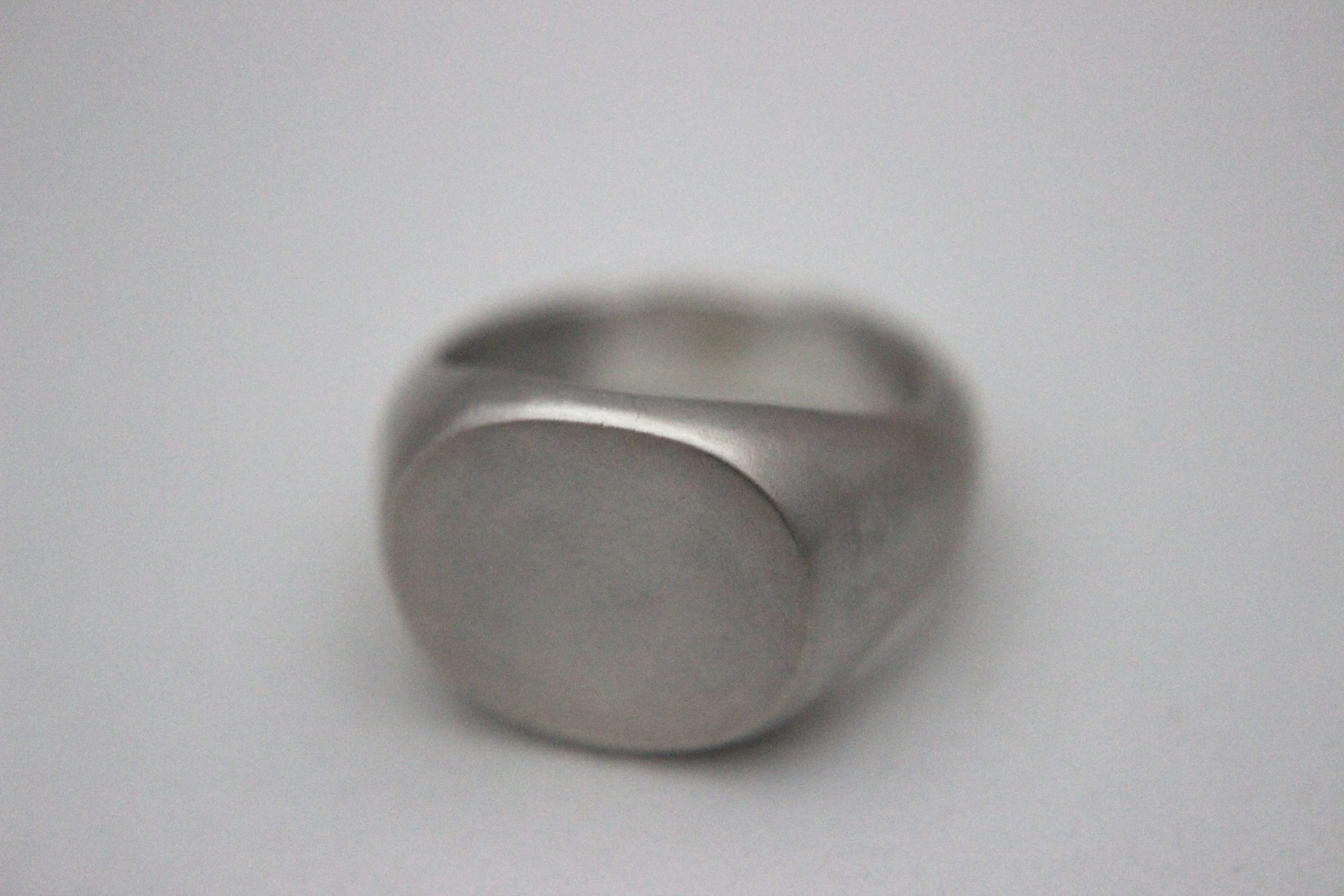 楕円形のフラットなトップを持つシグネットリングに、マット加工(艶消し)を施しました。