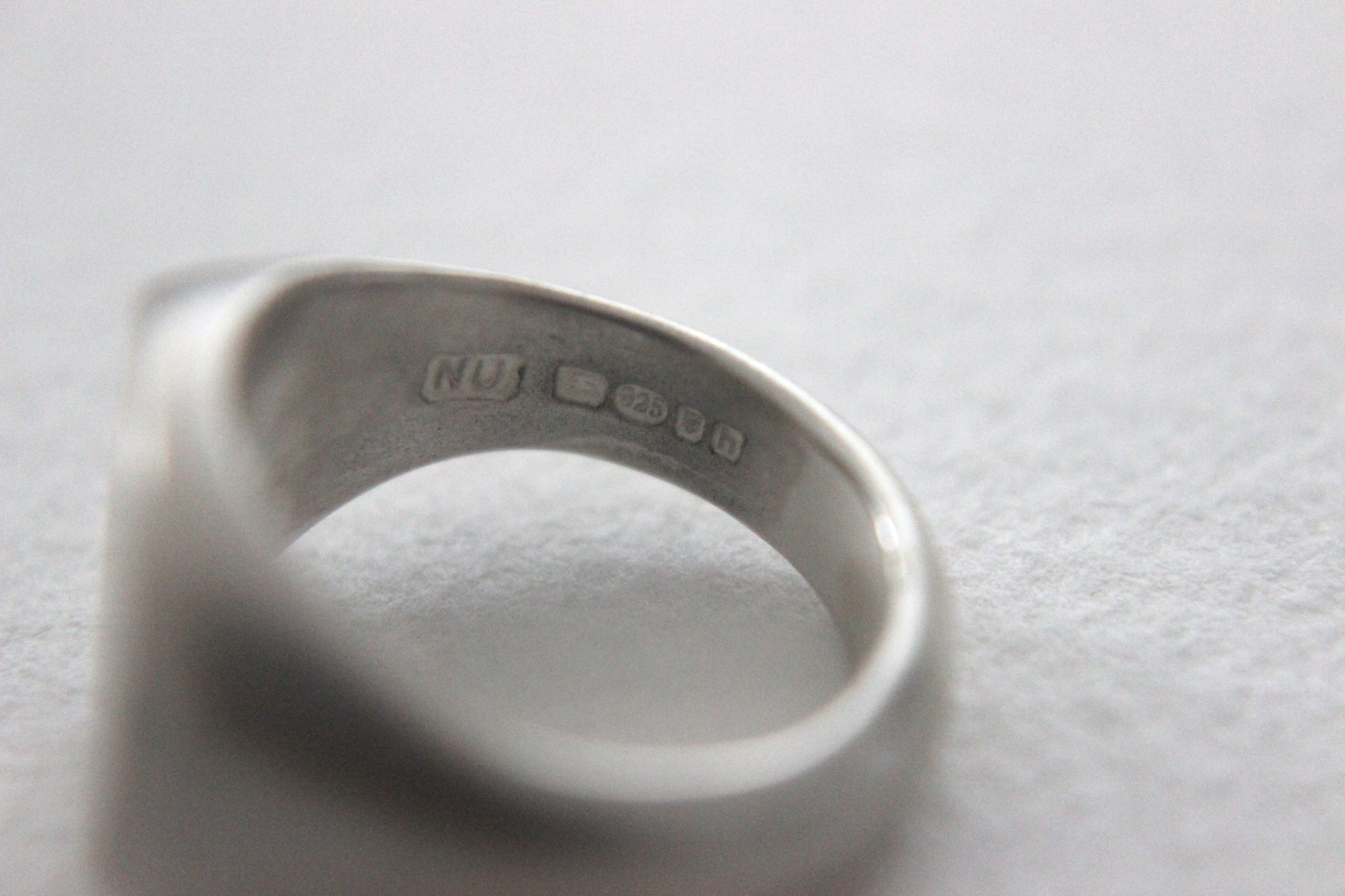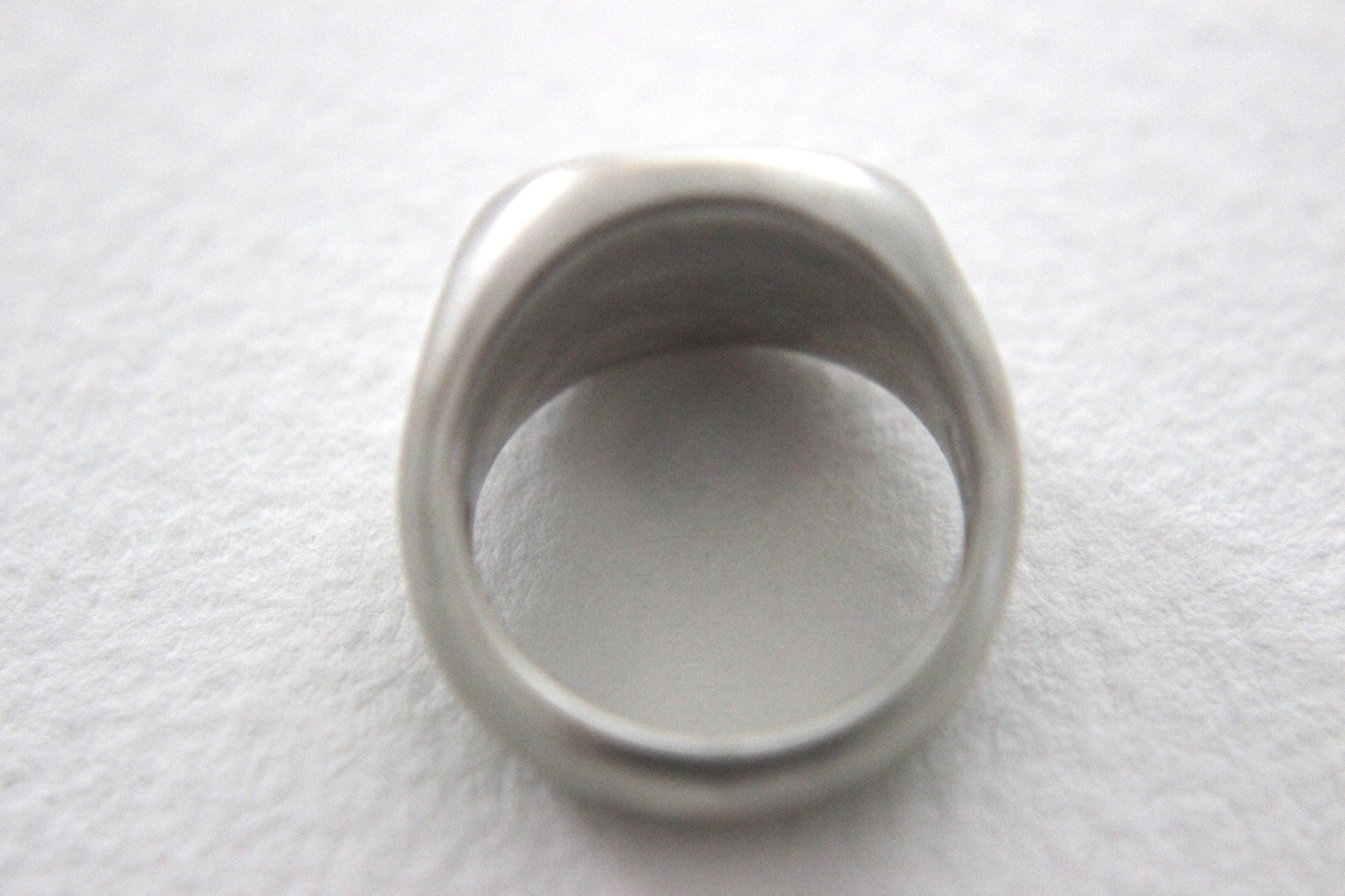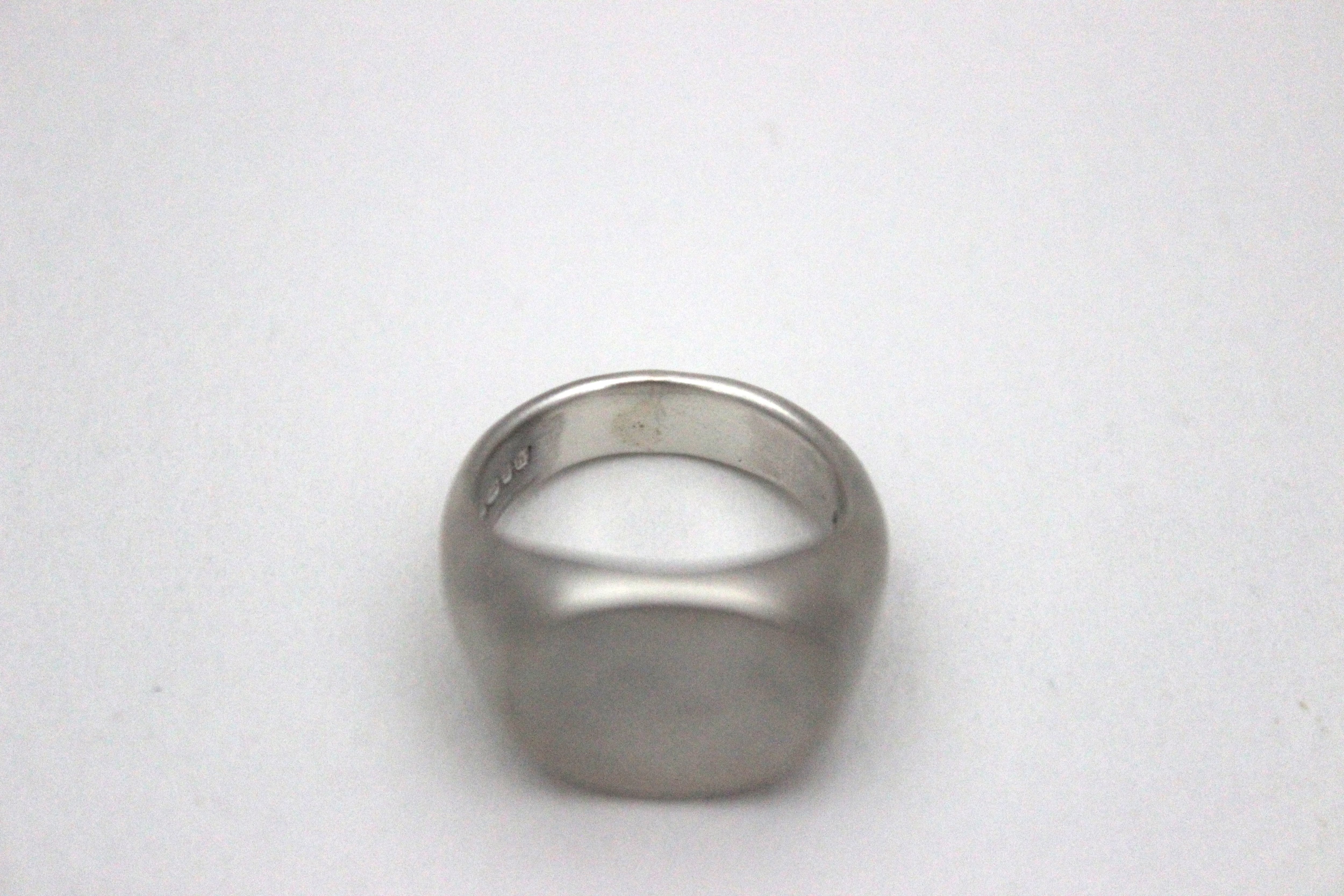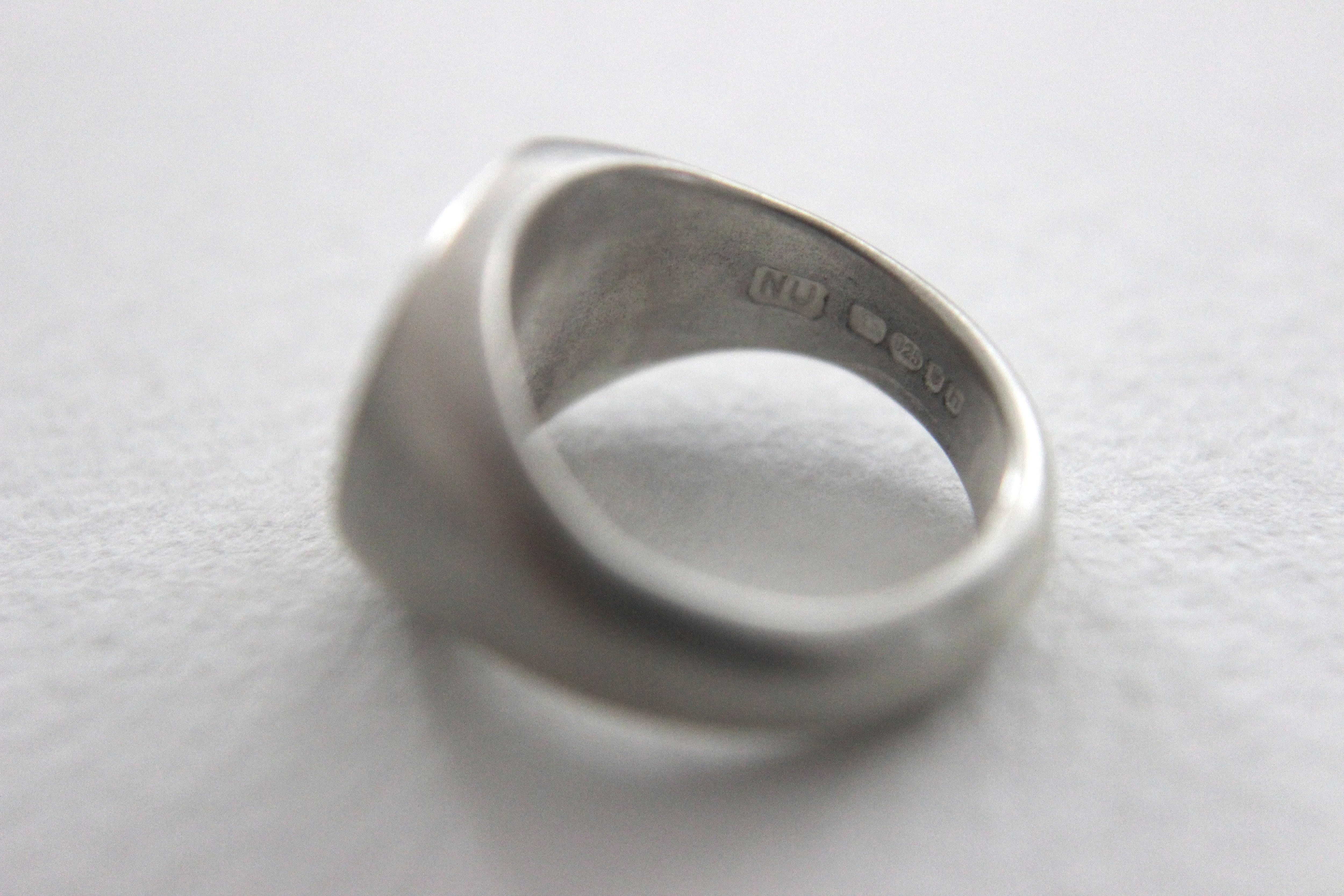 楕円形のフラットなトップを持つシグネットリングに、マット加工(艶消し)を施しました。