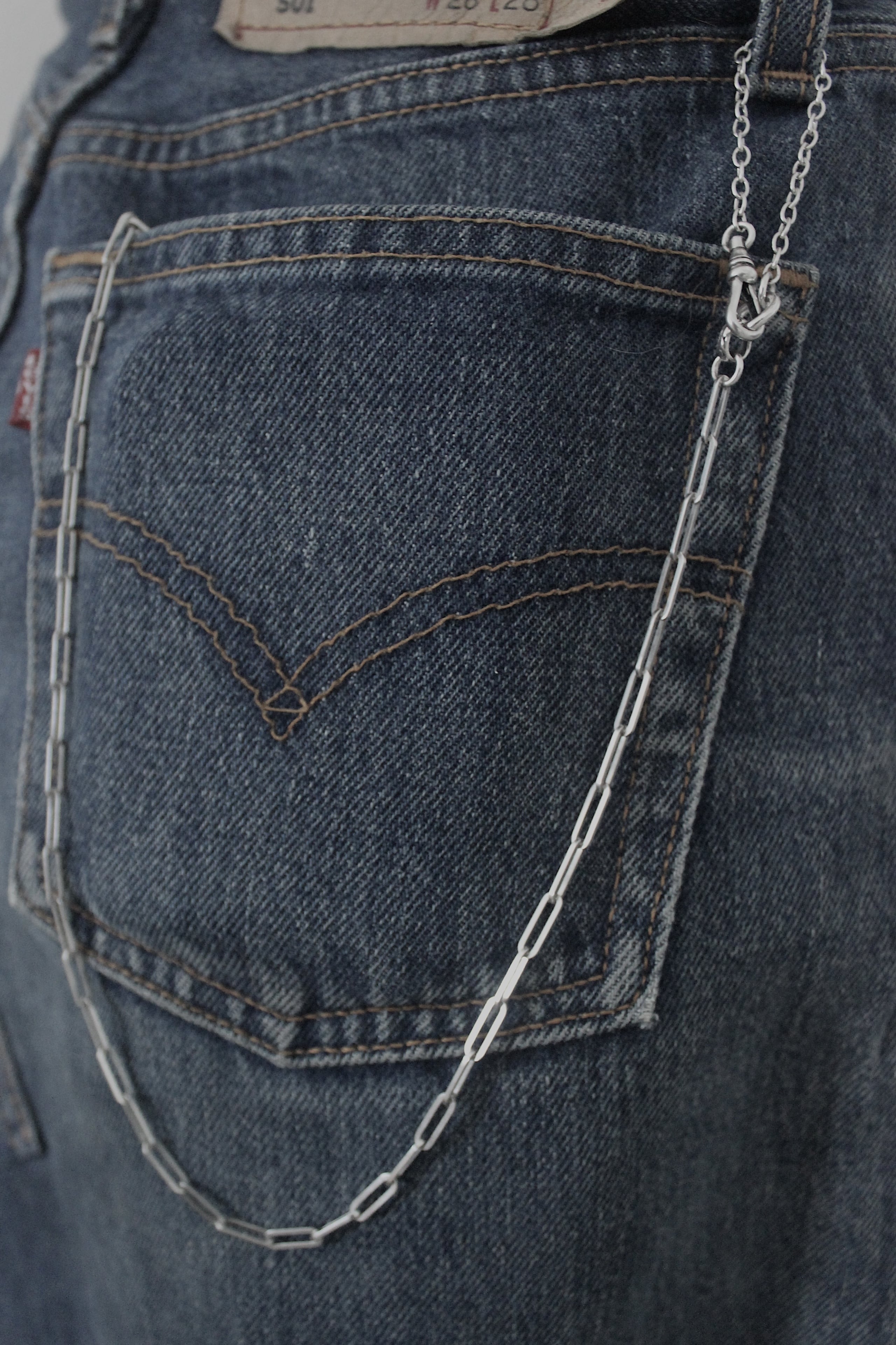細身のチェーンを使用したミニマルデザインのウォレットチェーンです。