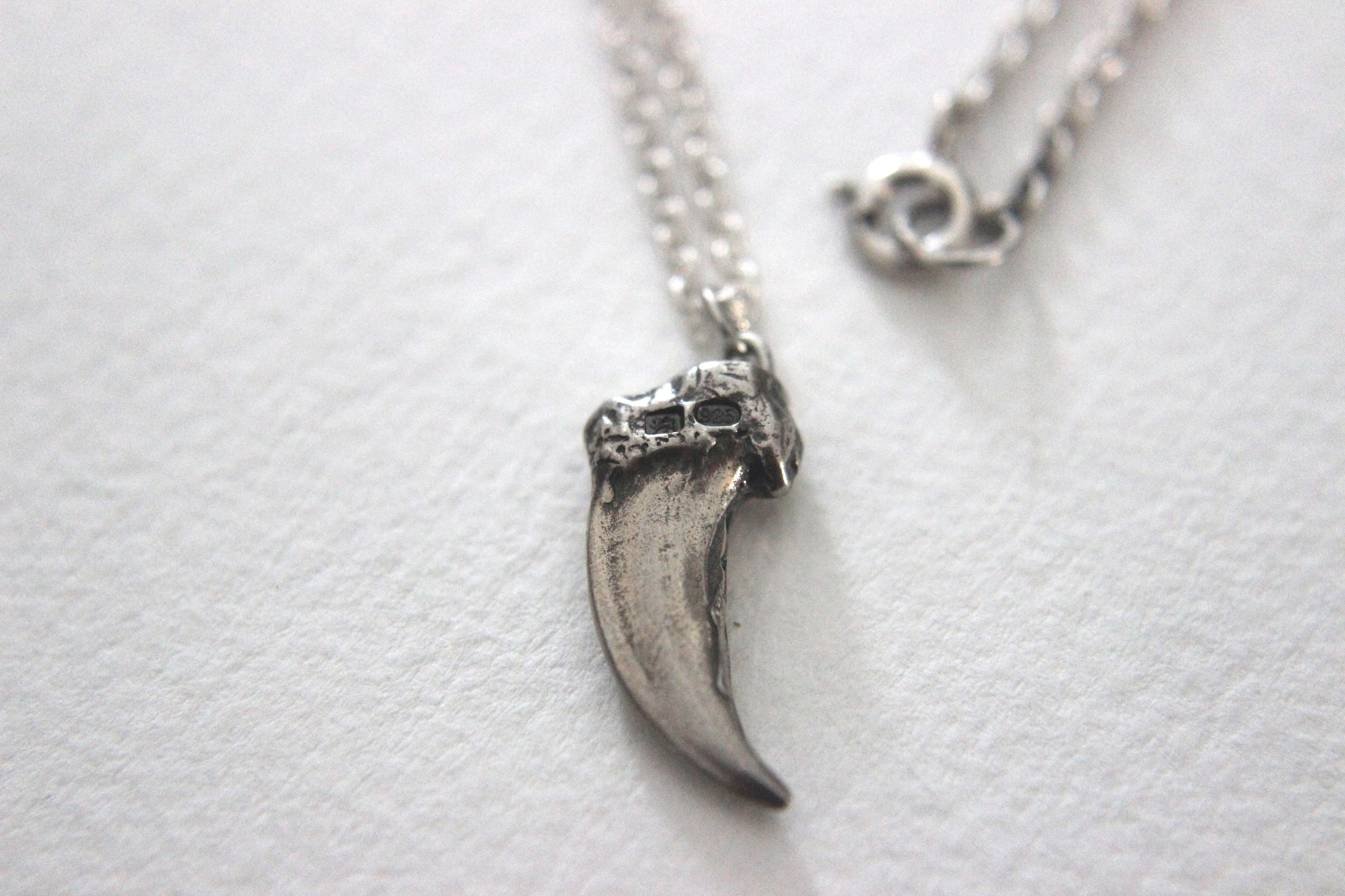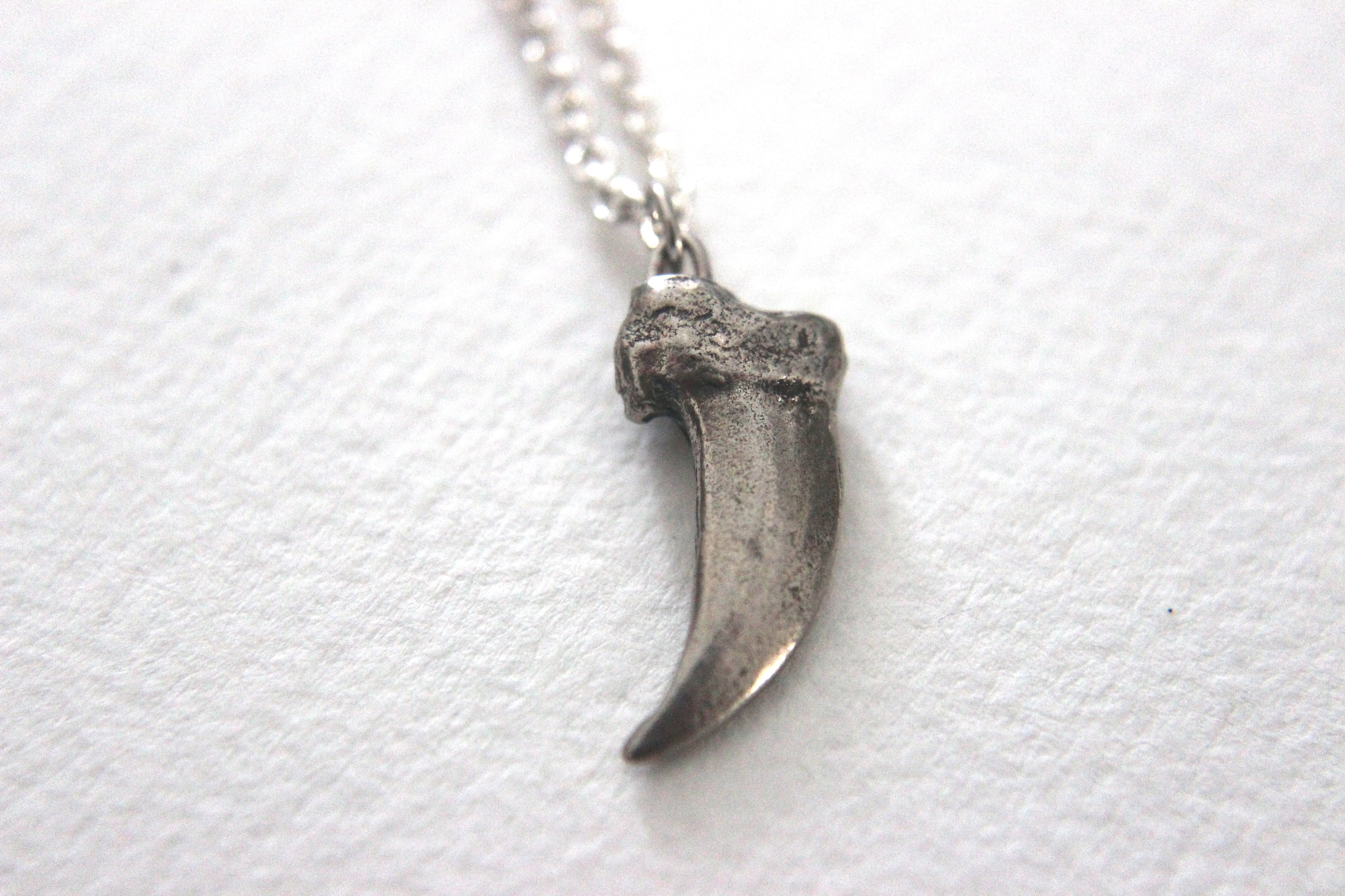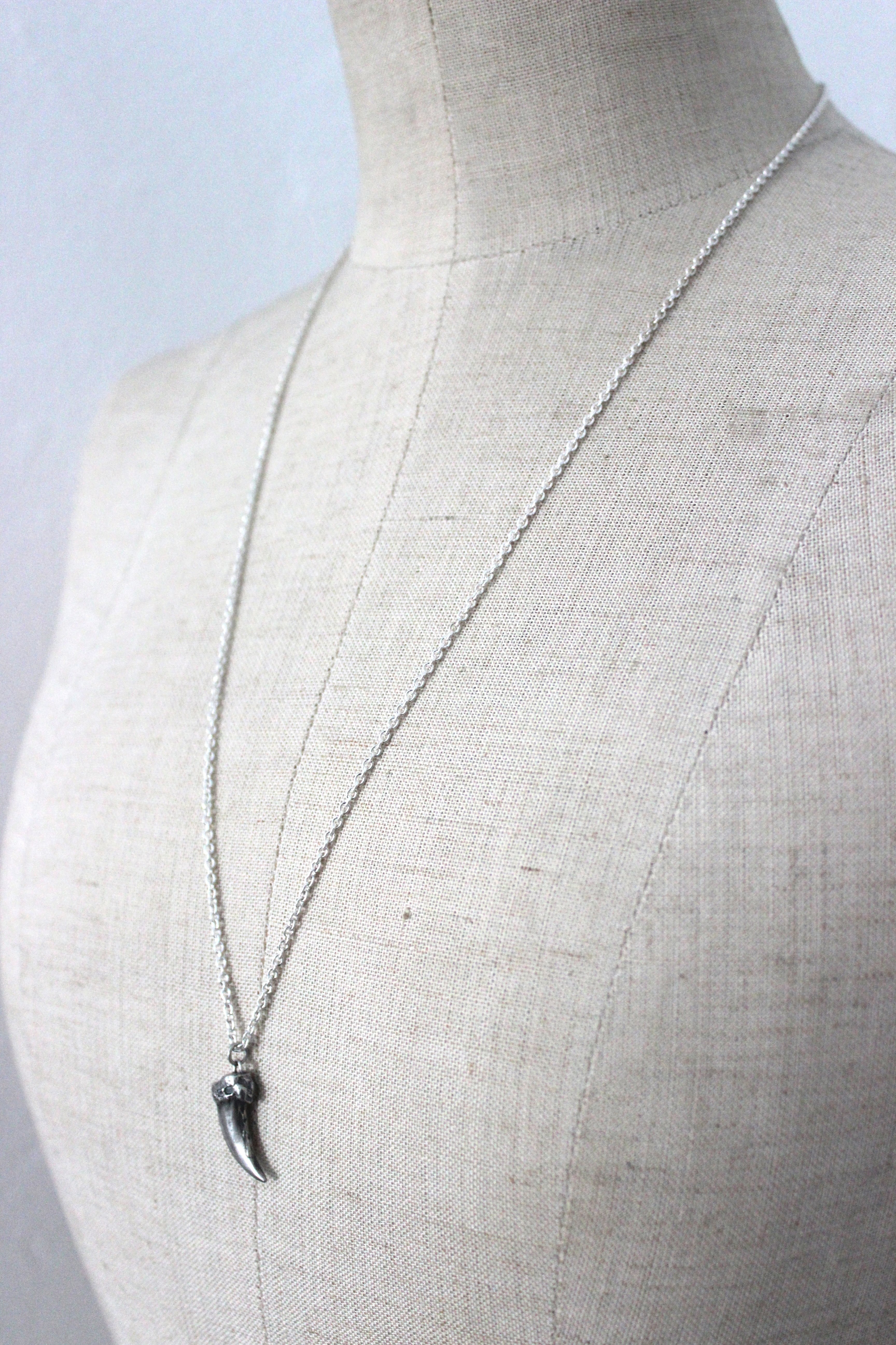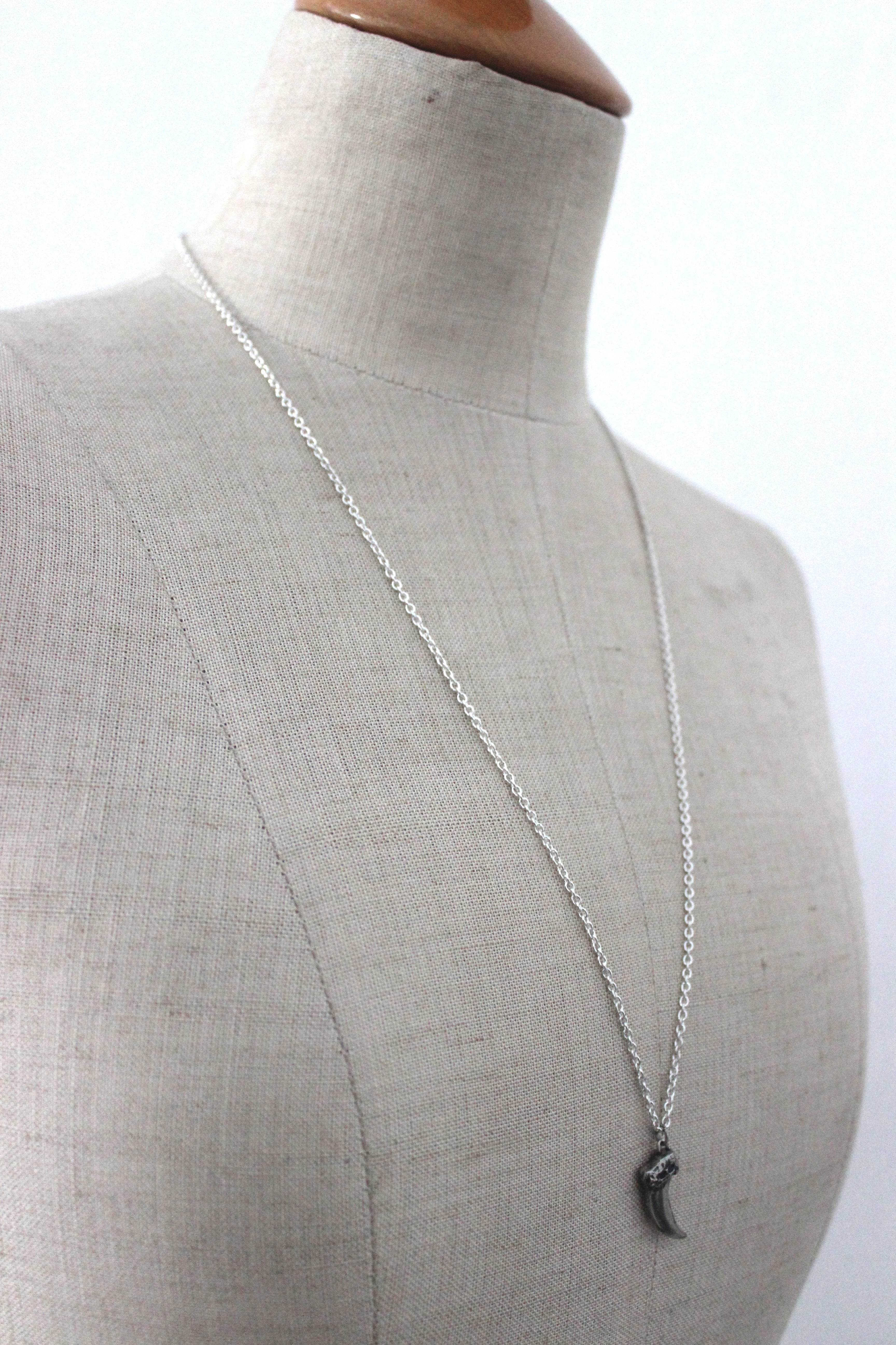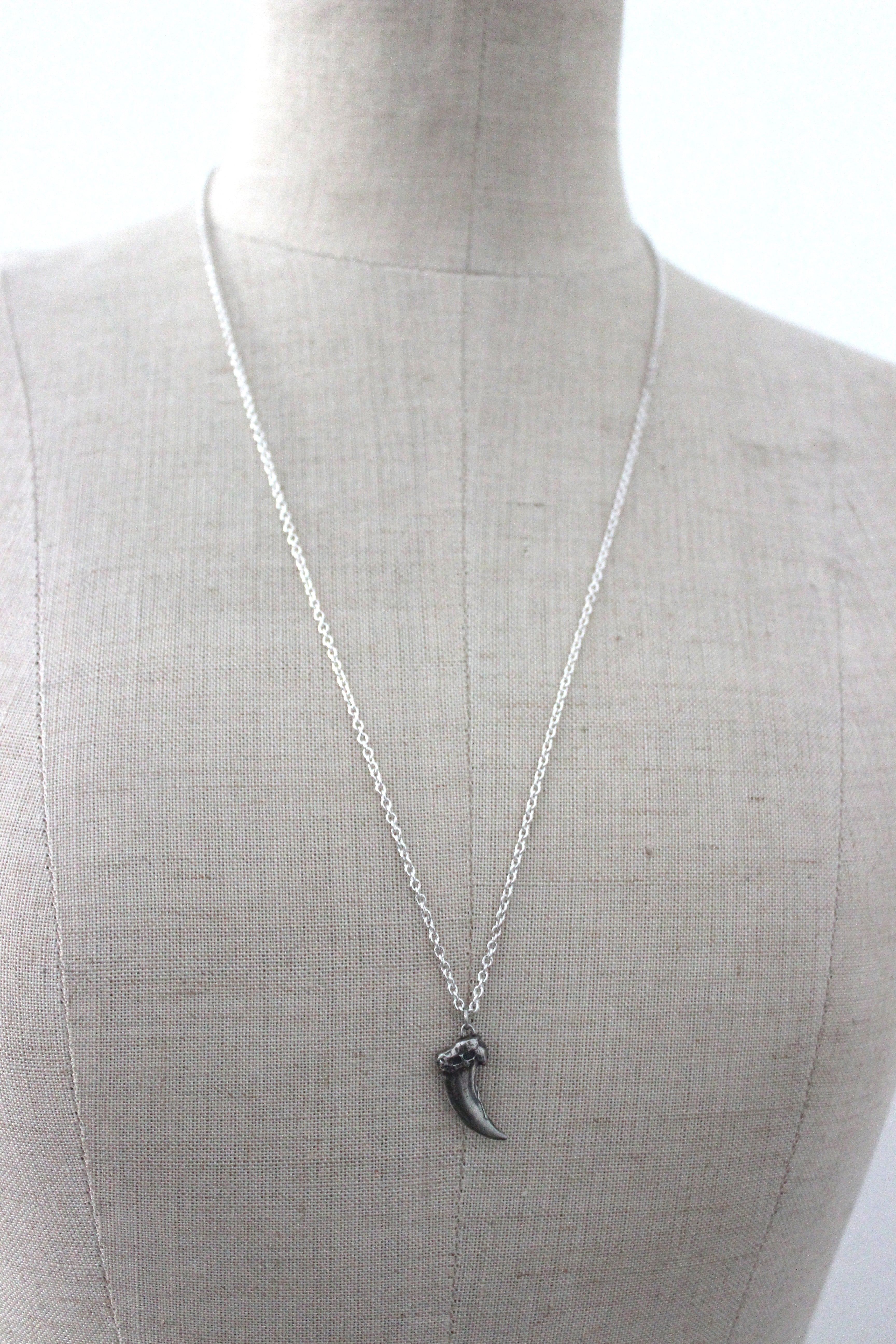 シルバーでかたどったコヨーテの爪モチーフを、ネックレスに仕立てました。
