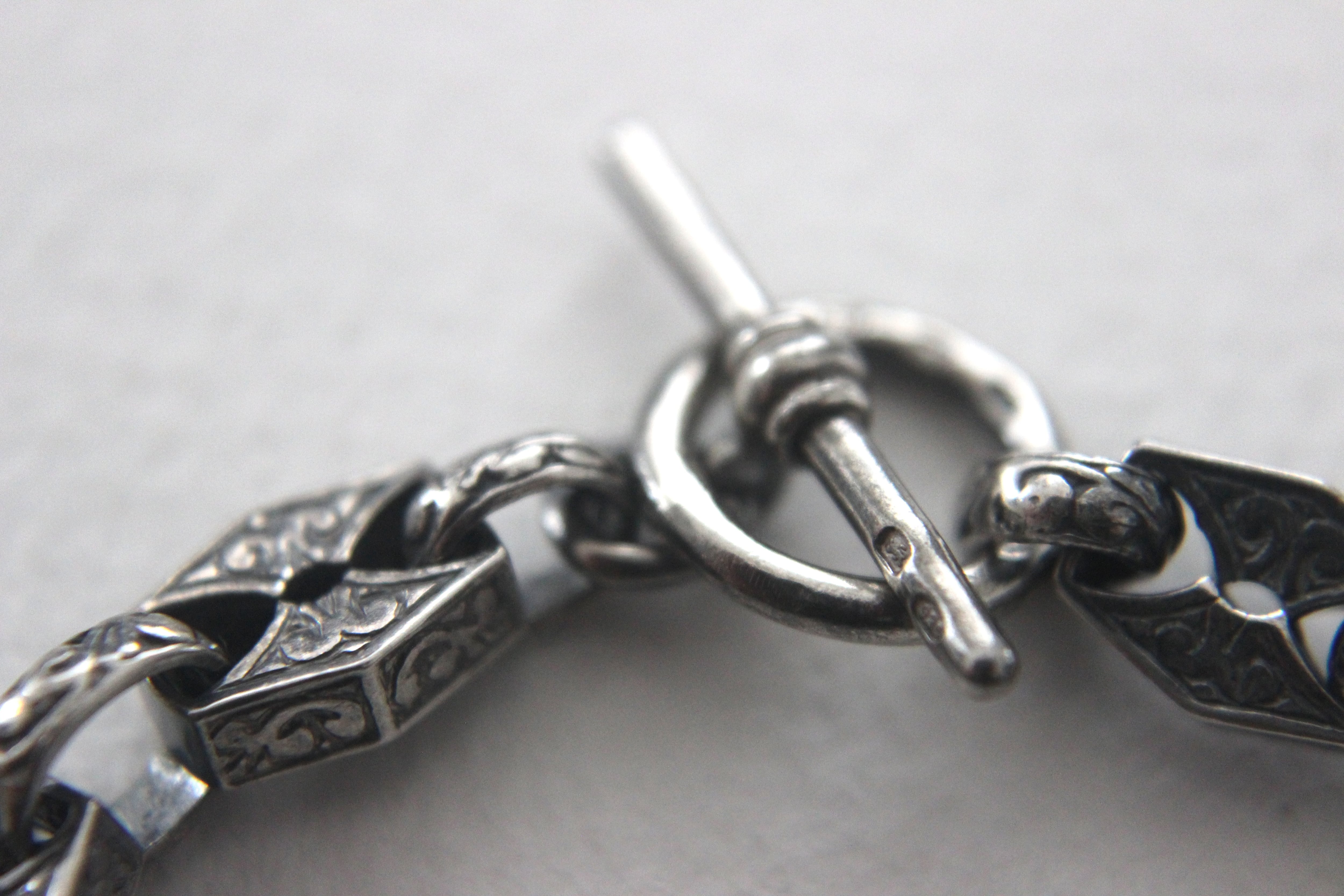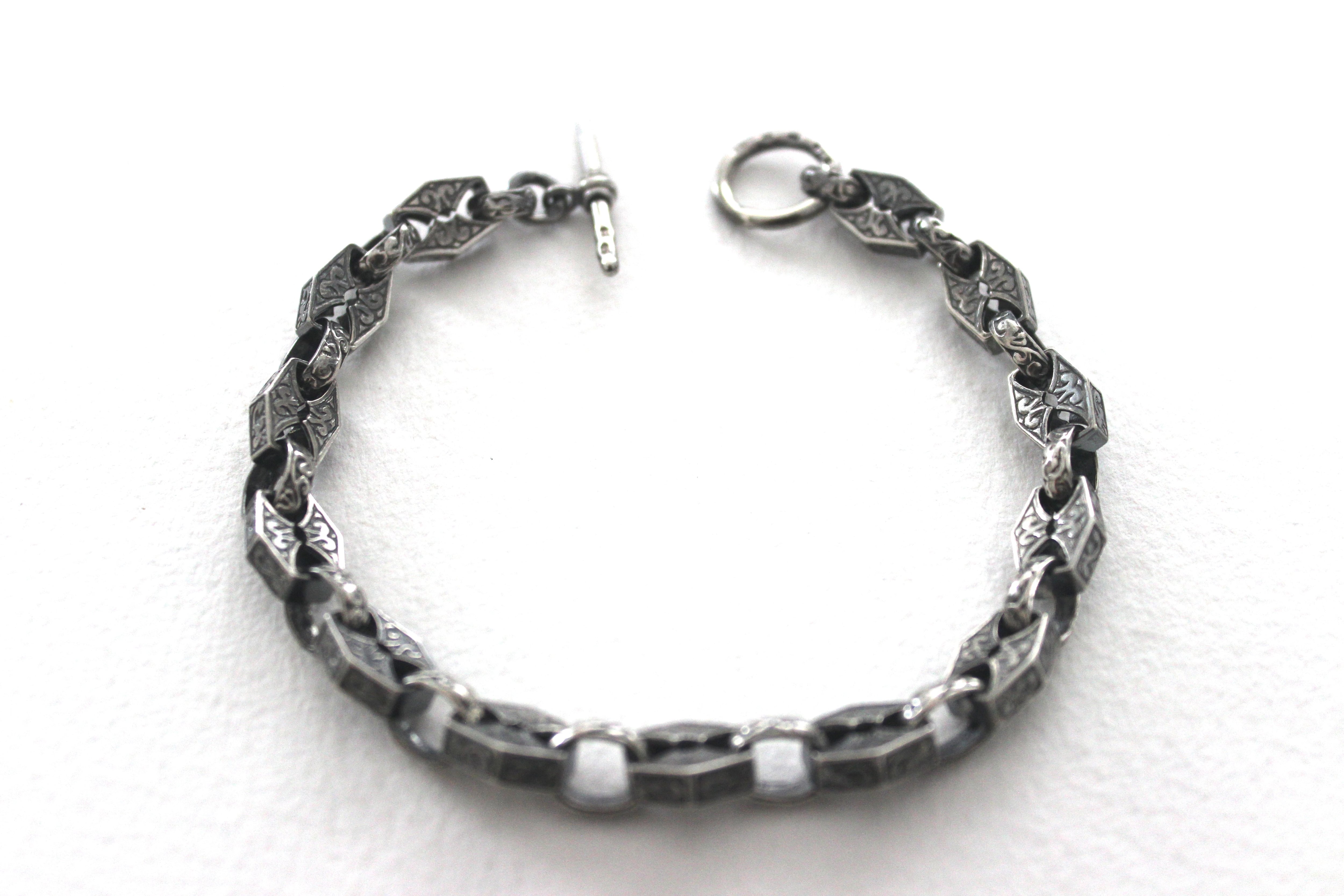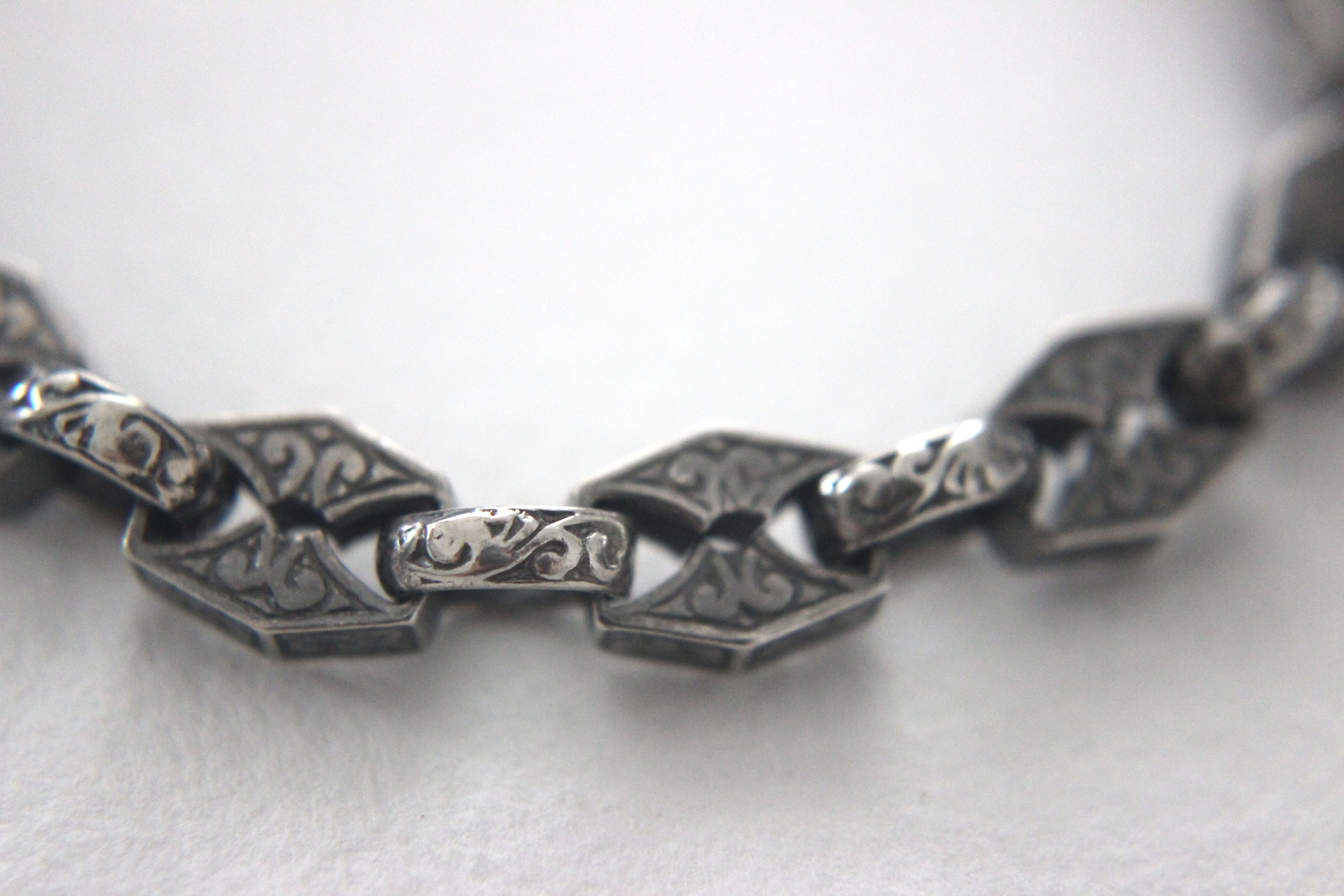 装飾性の高いチェーンを用い、ブレスレットに仕立てました。