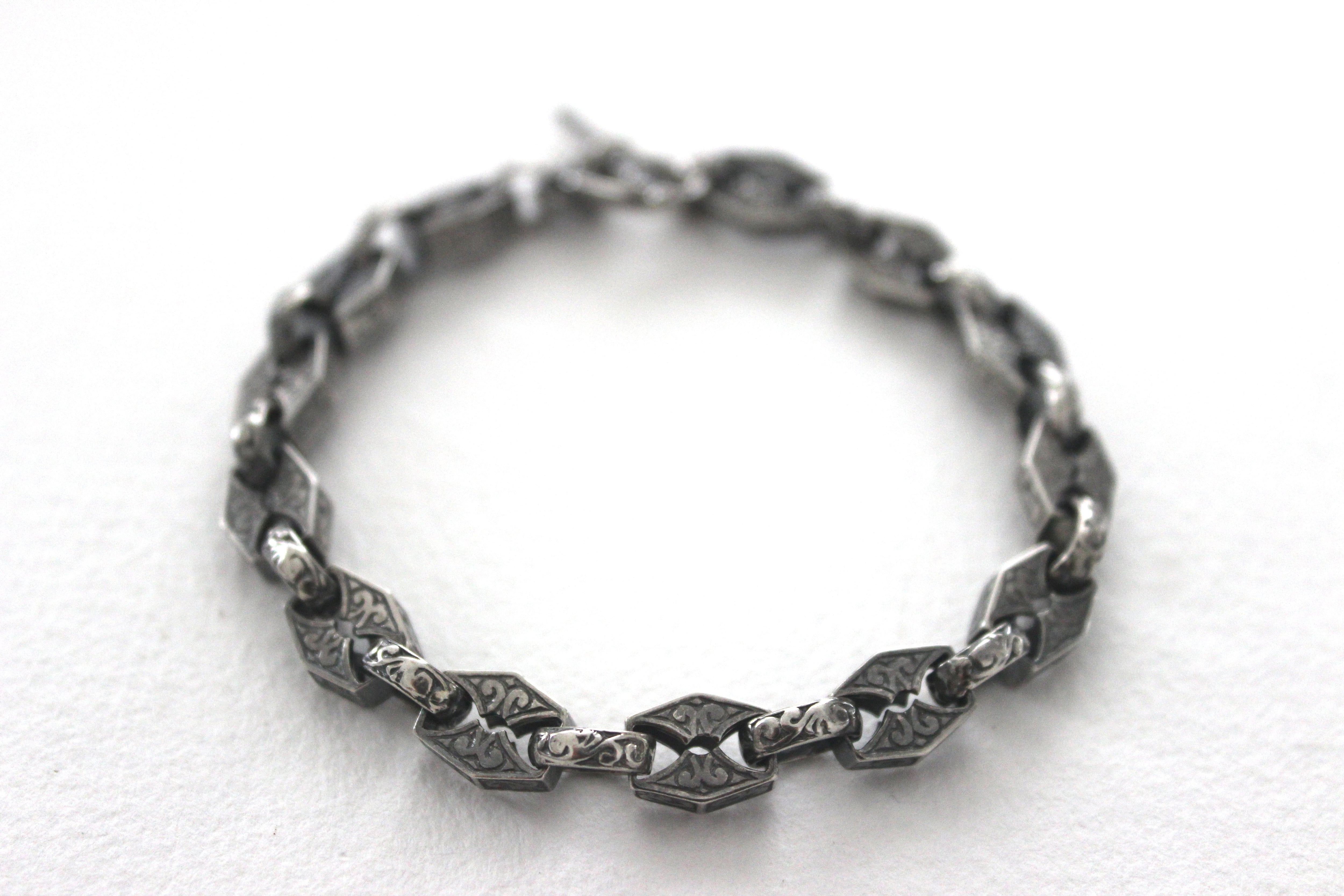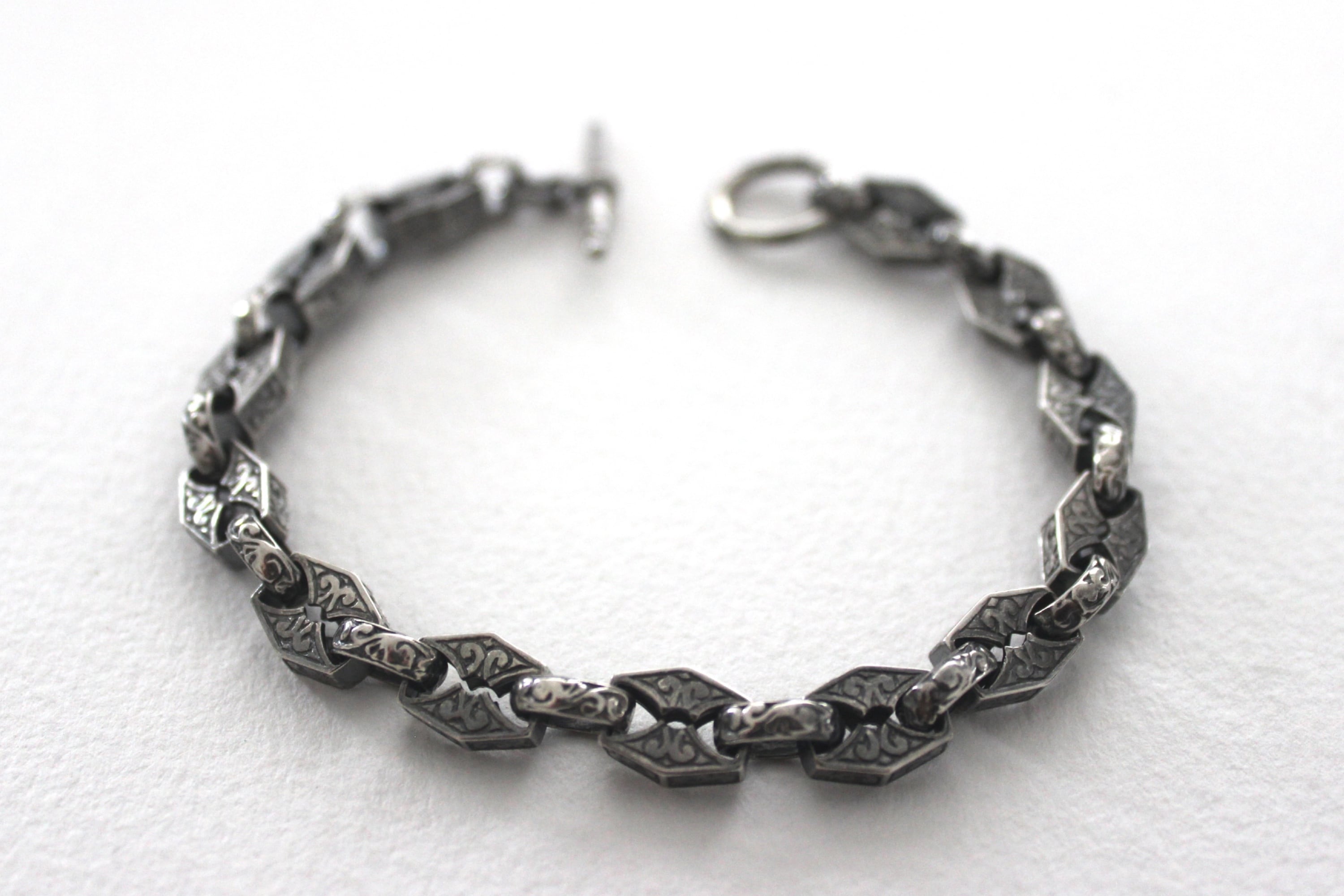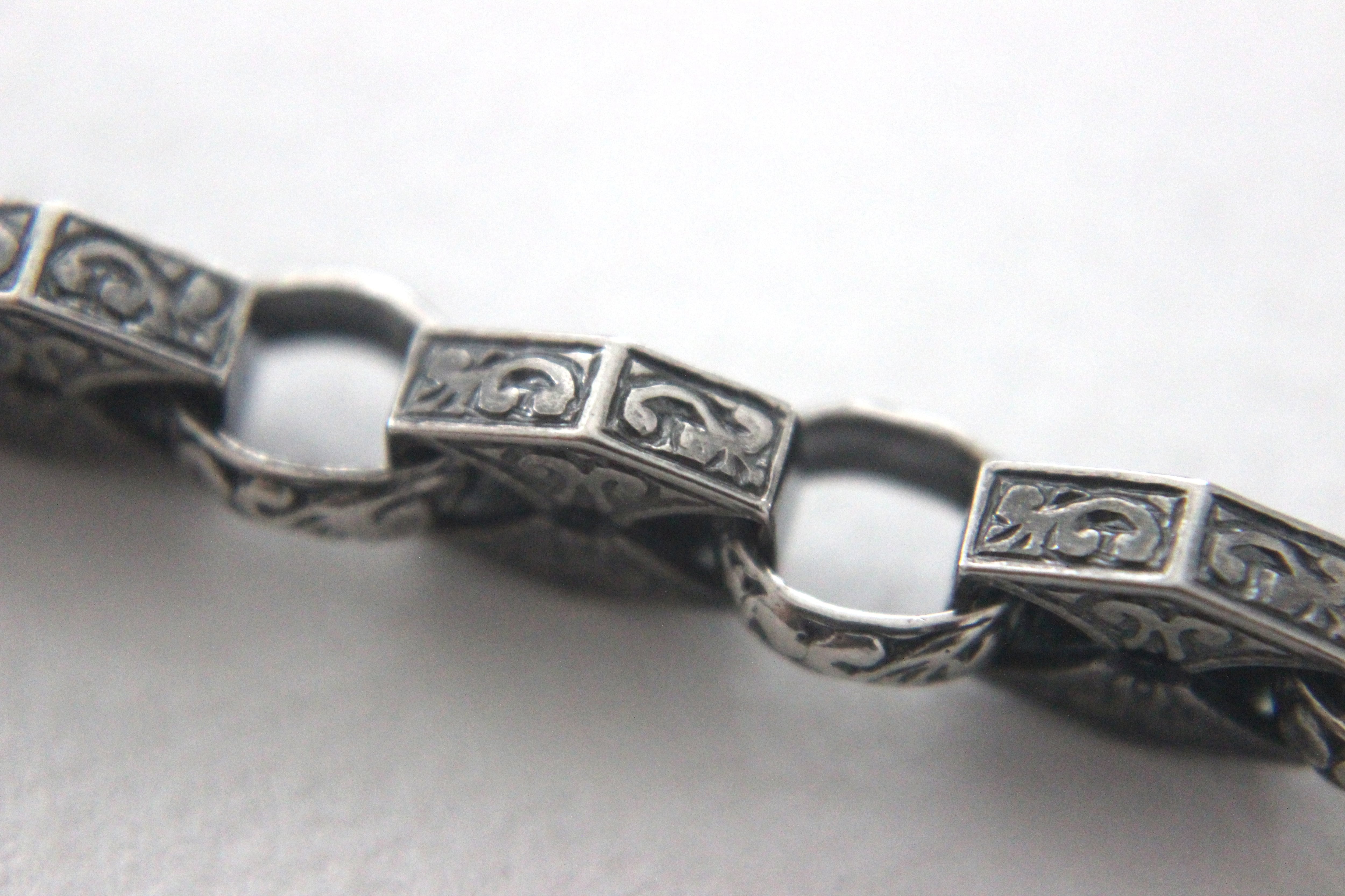 装飾性の高いチェーンを用い、ブレスレットに仕立てました。