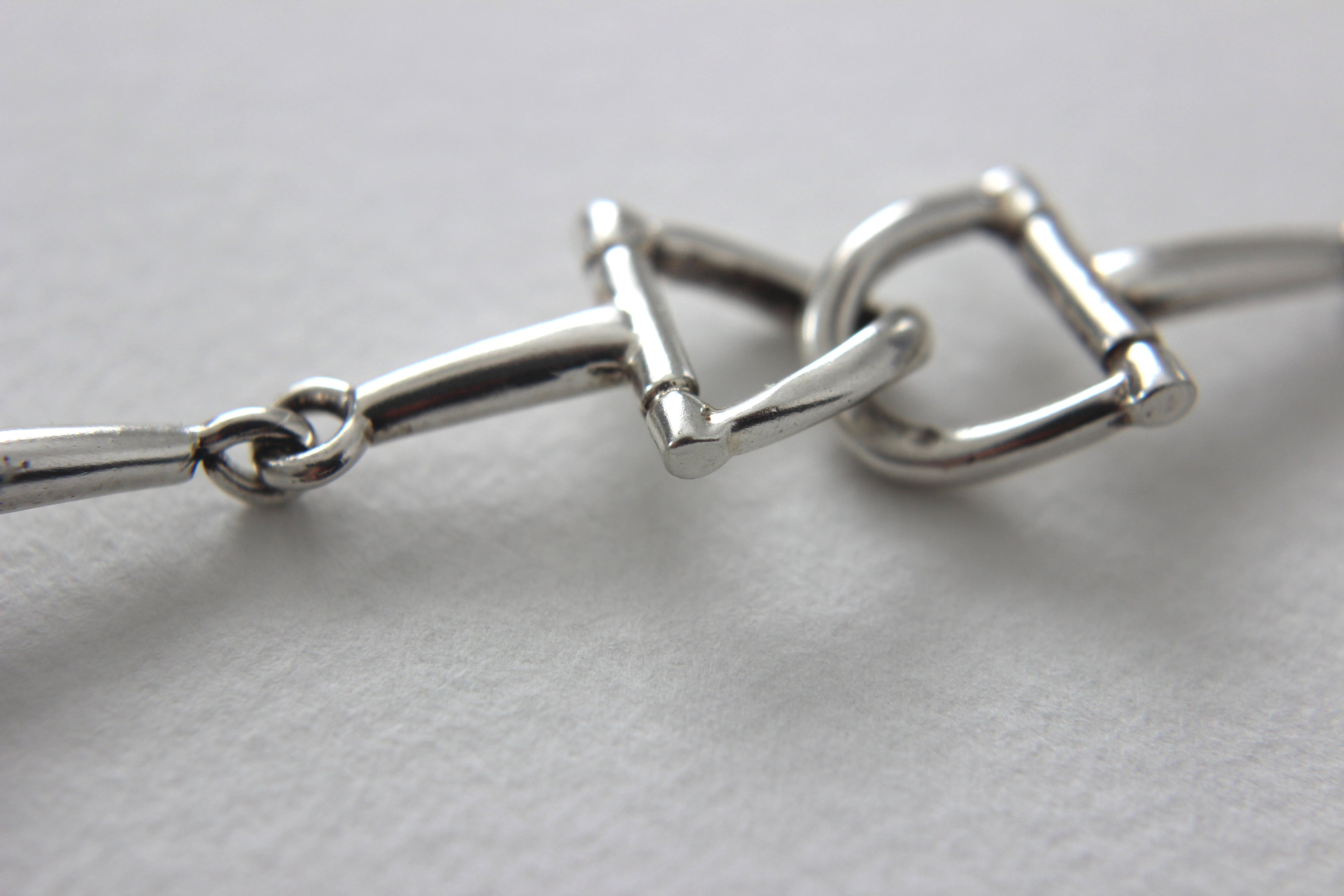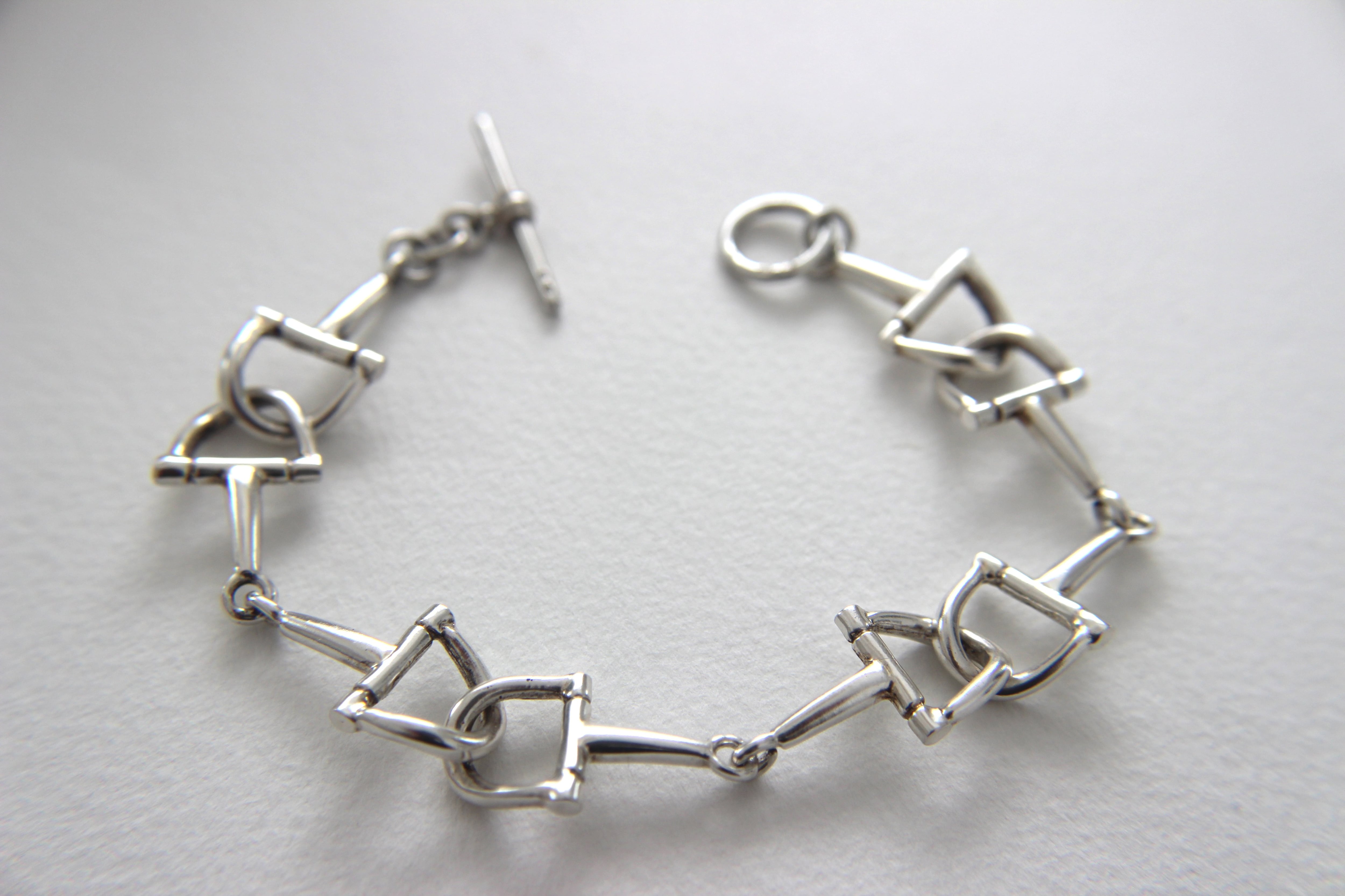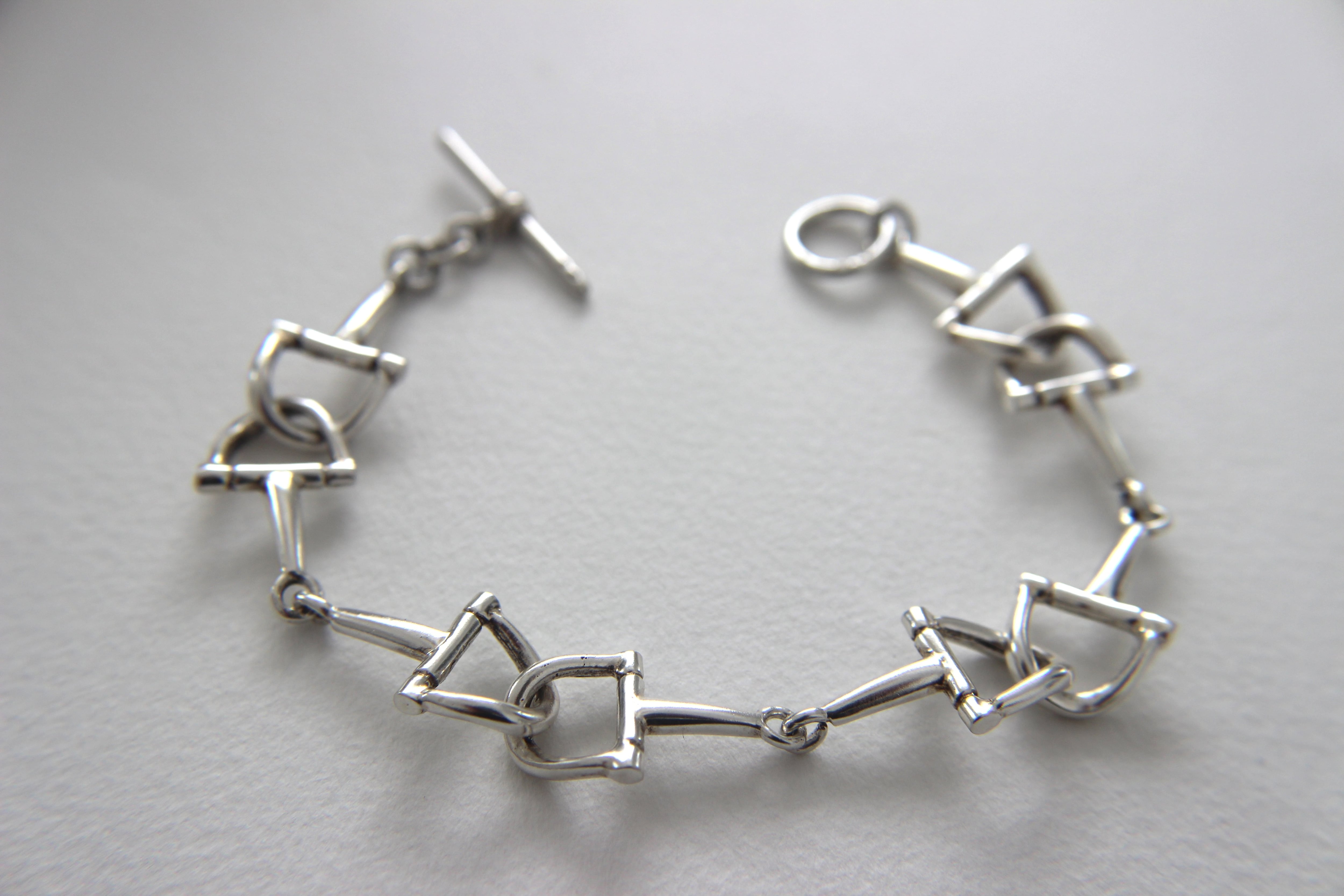 馬具のあぶみを型モチーフのチェーンを使用したブレスレットです。